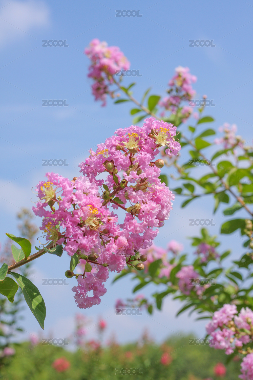 藍(lán)天背景下的紫薇花