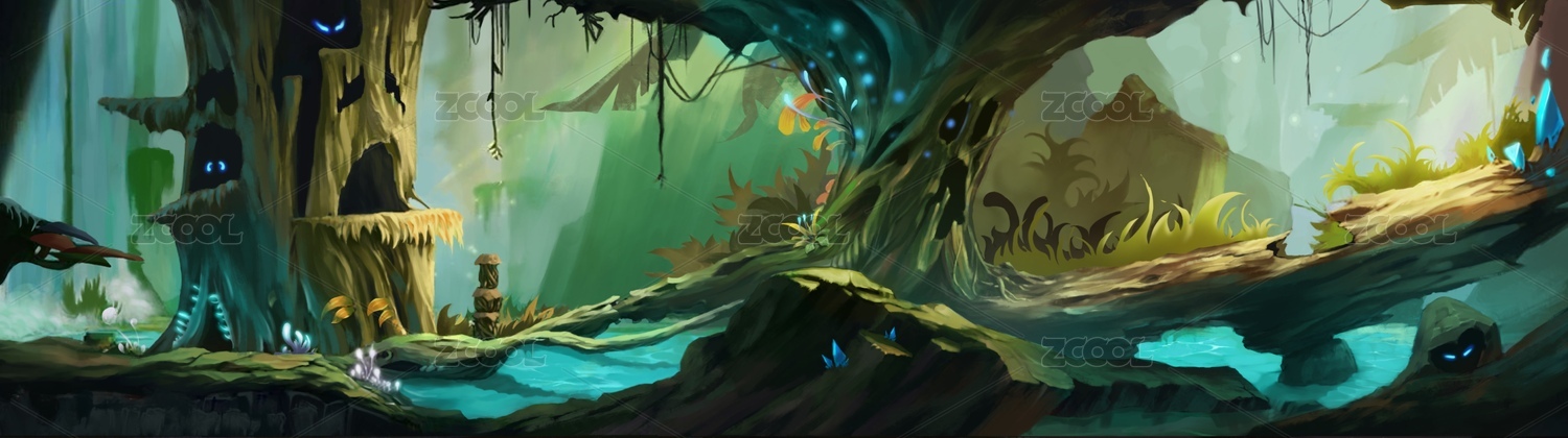 一個(gè)陽光明媚的魔幻森林的游戲場景