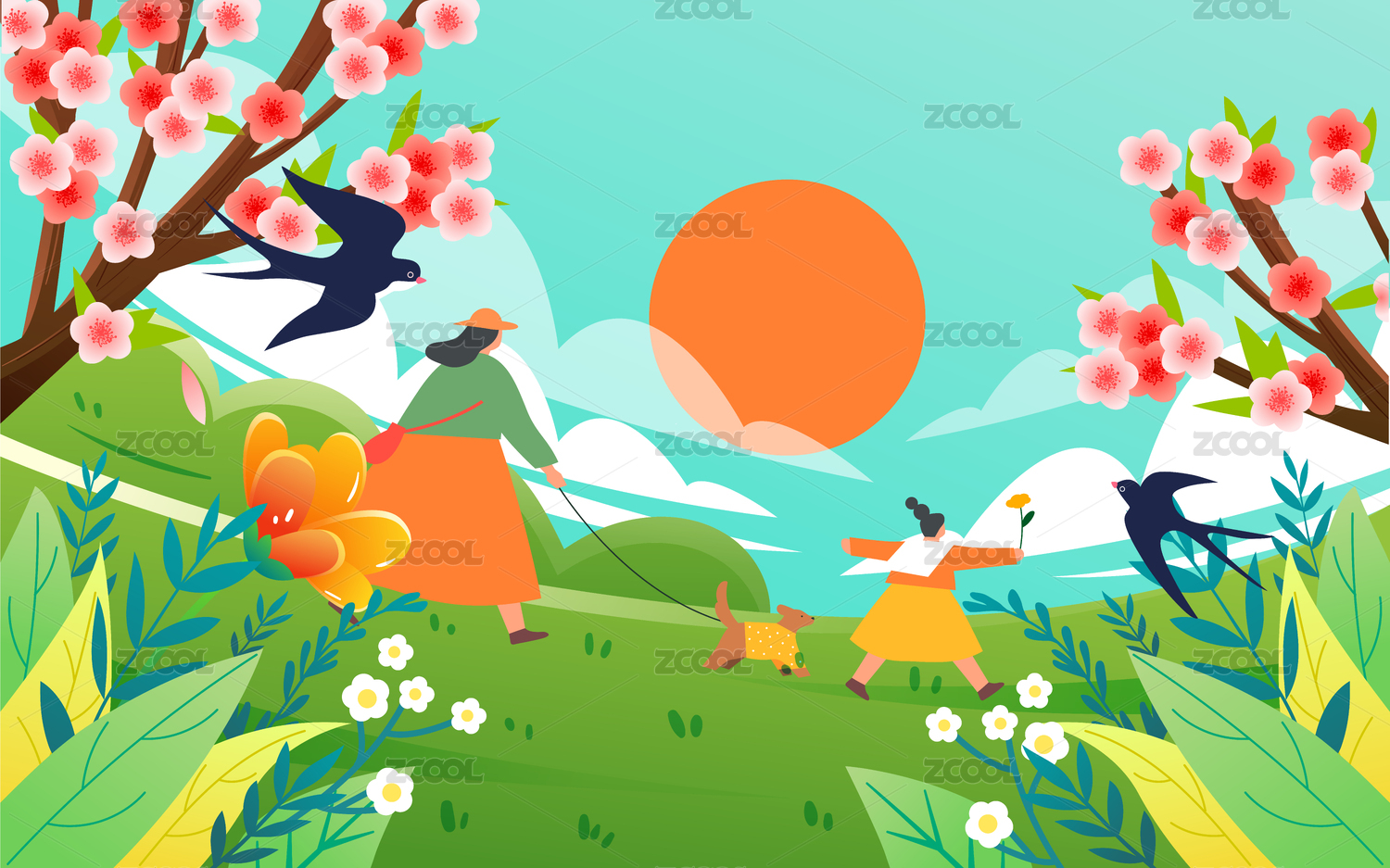 在陽光明媚鮮花盛開的春天踏青