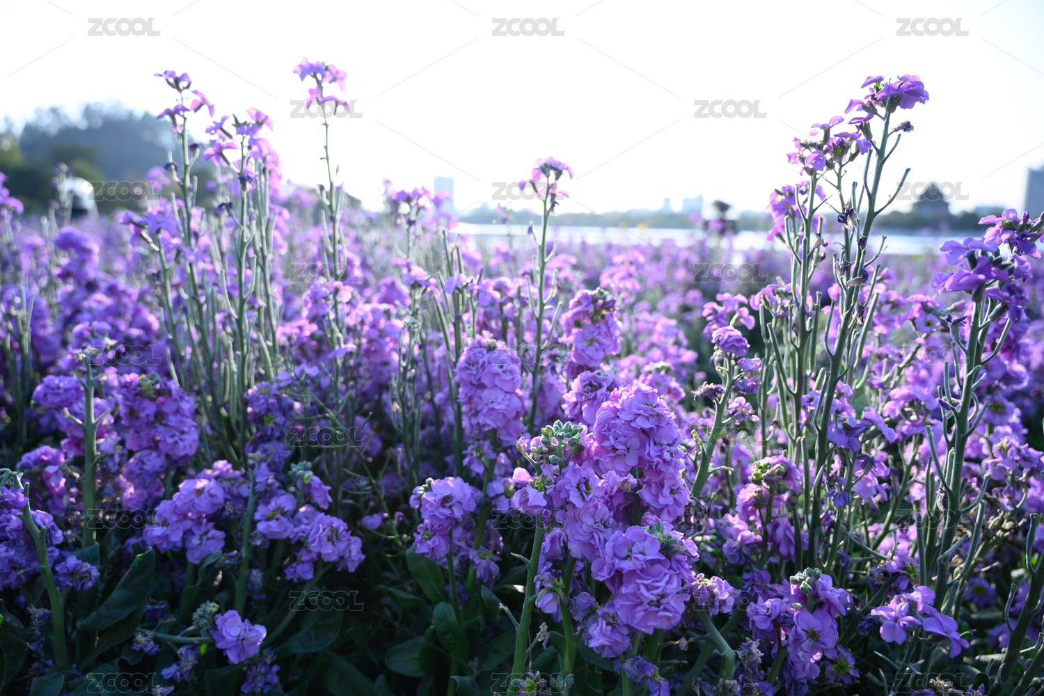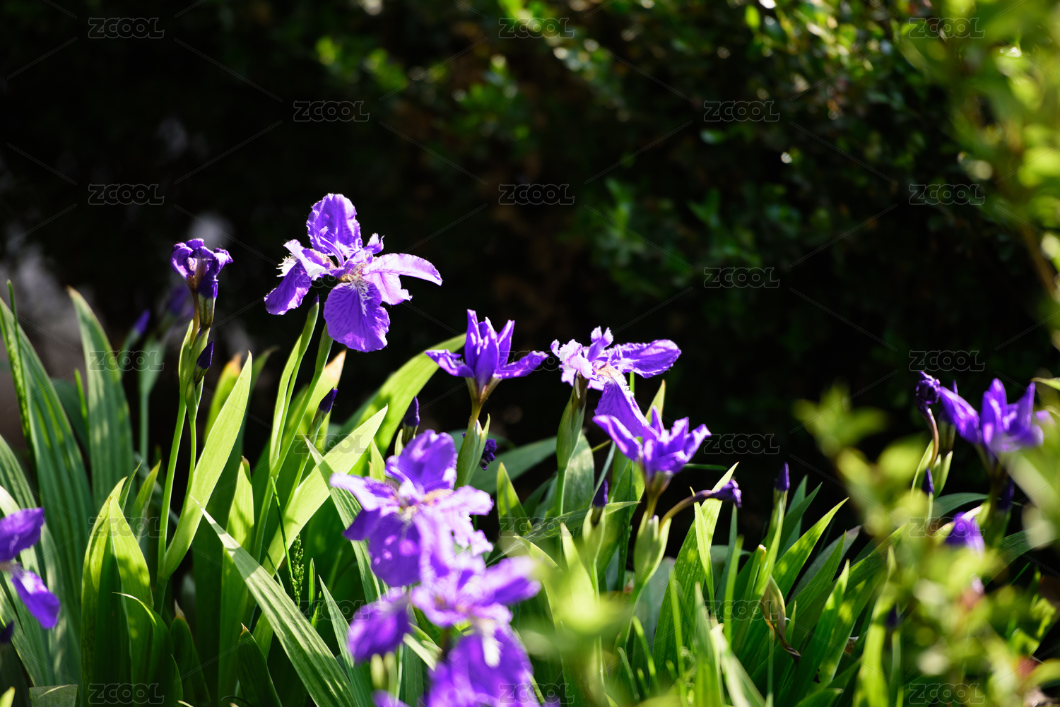 陽光明媚的春天,公園里盛開的馬蘭花