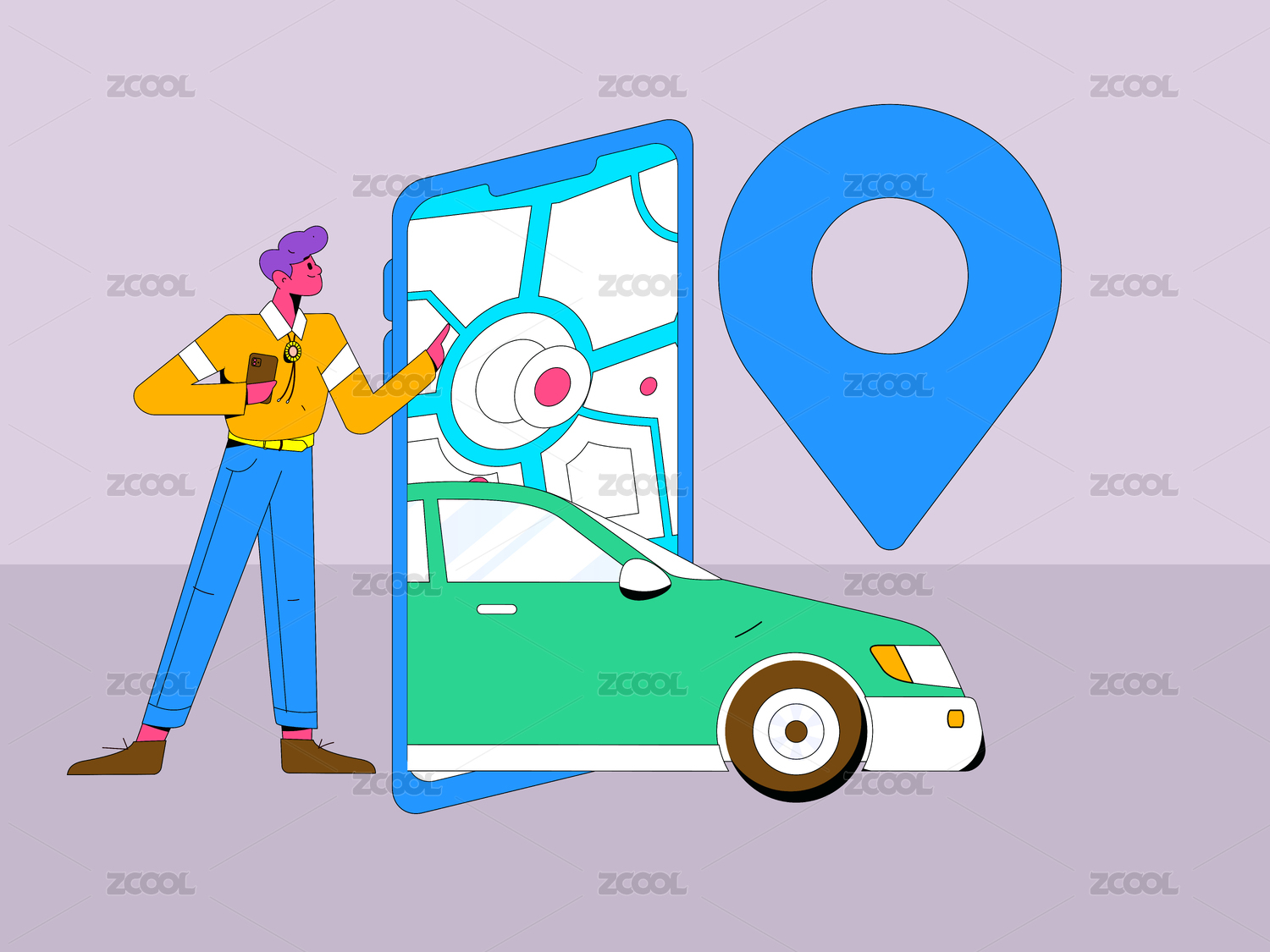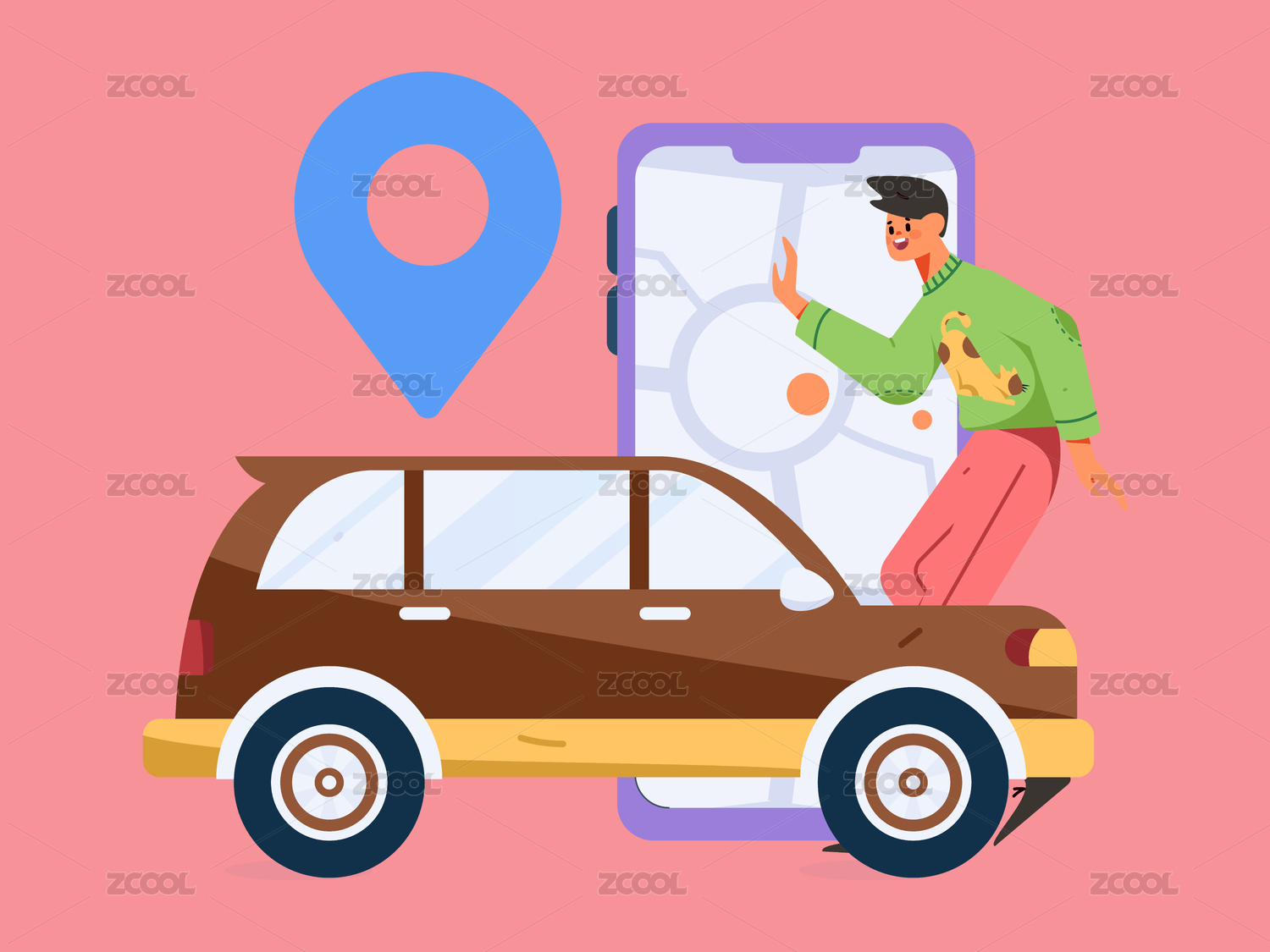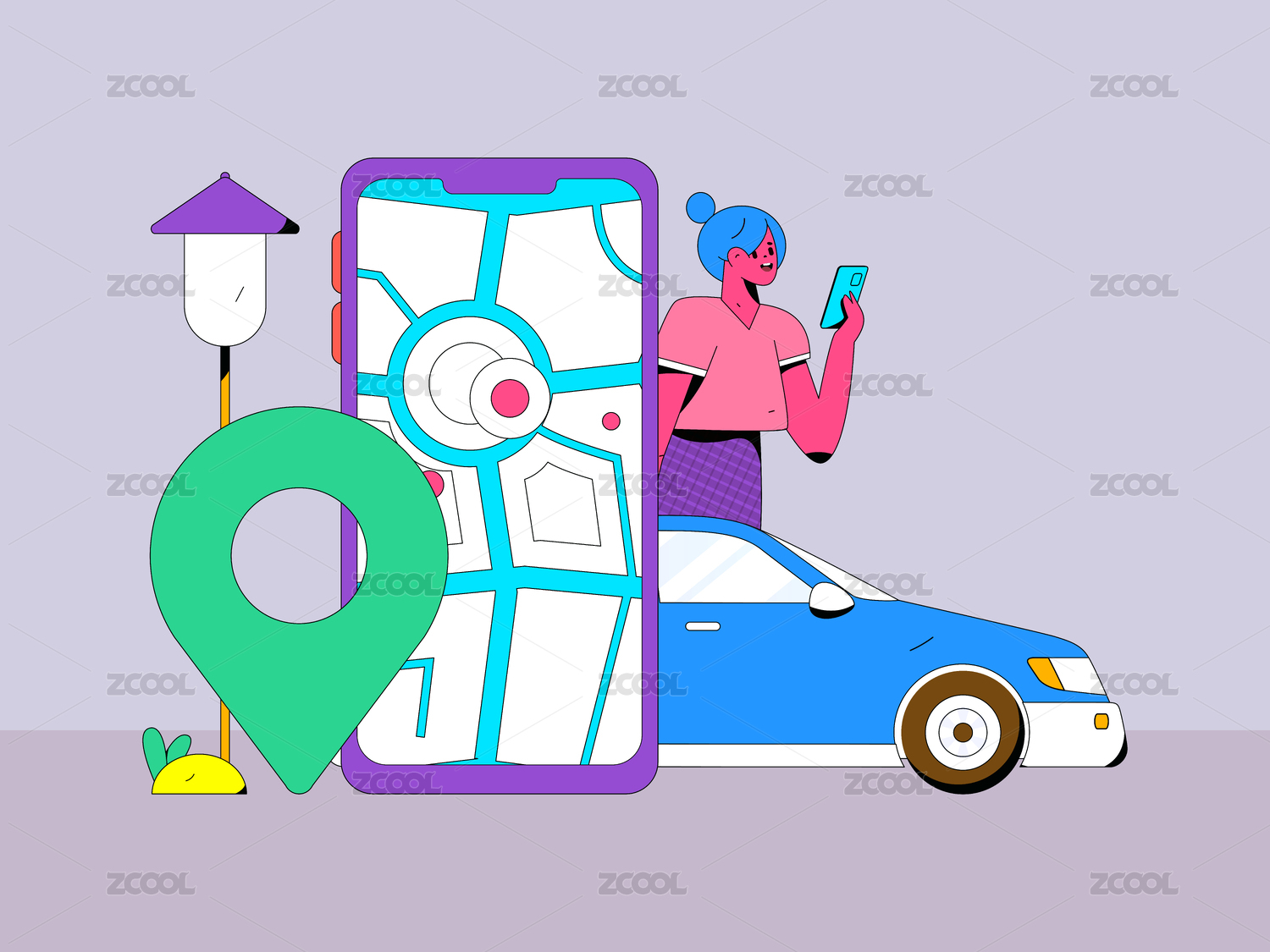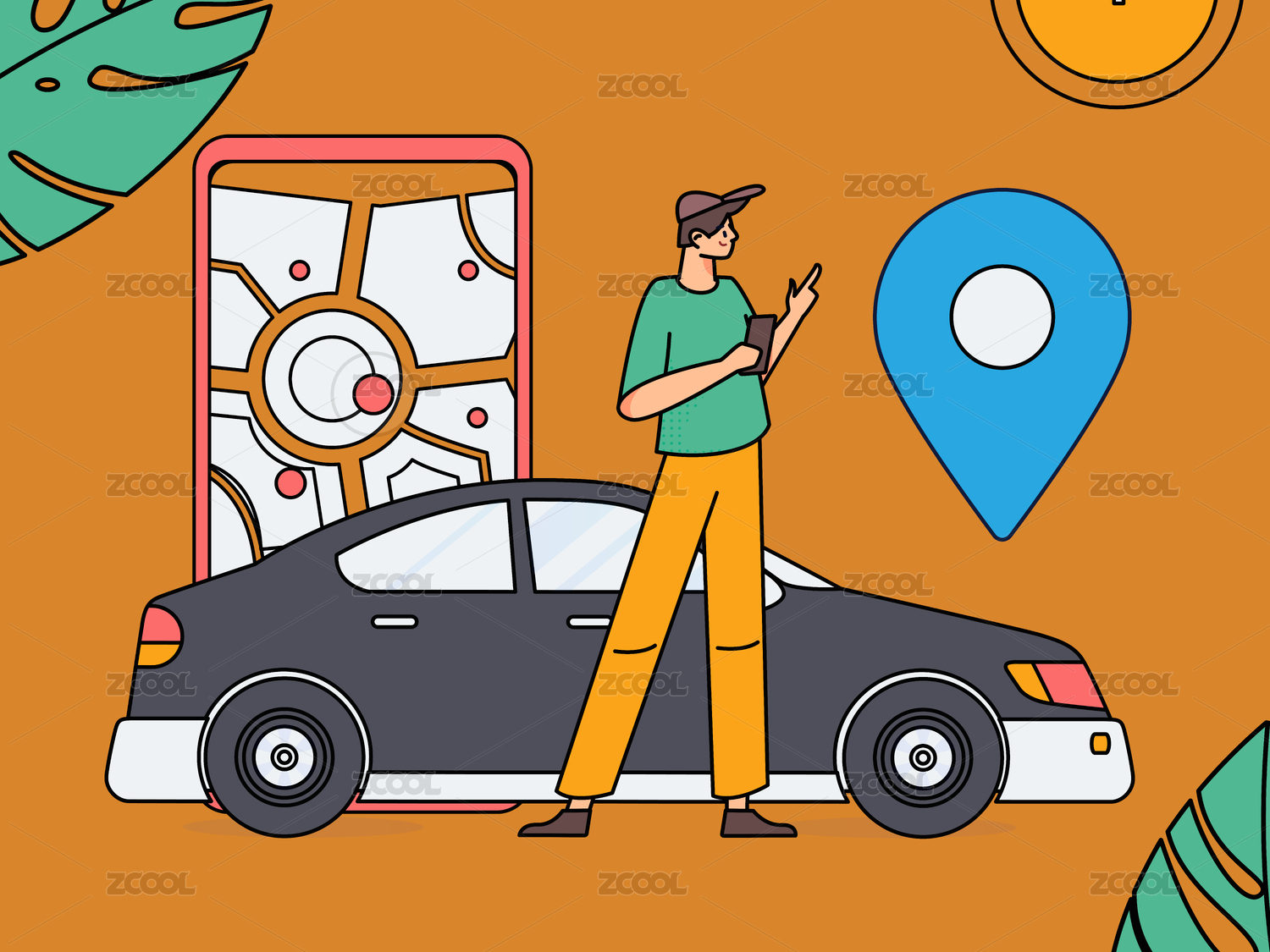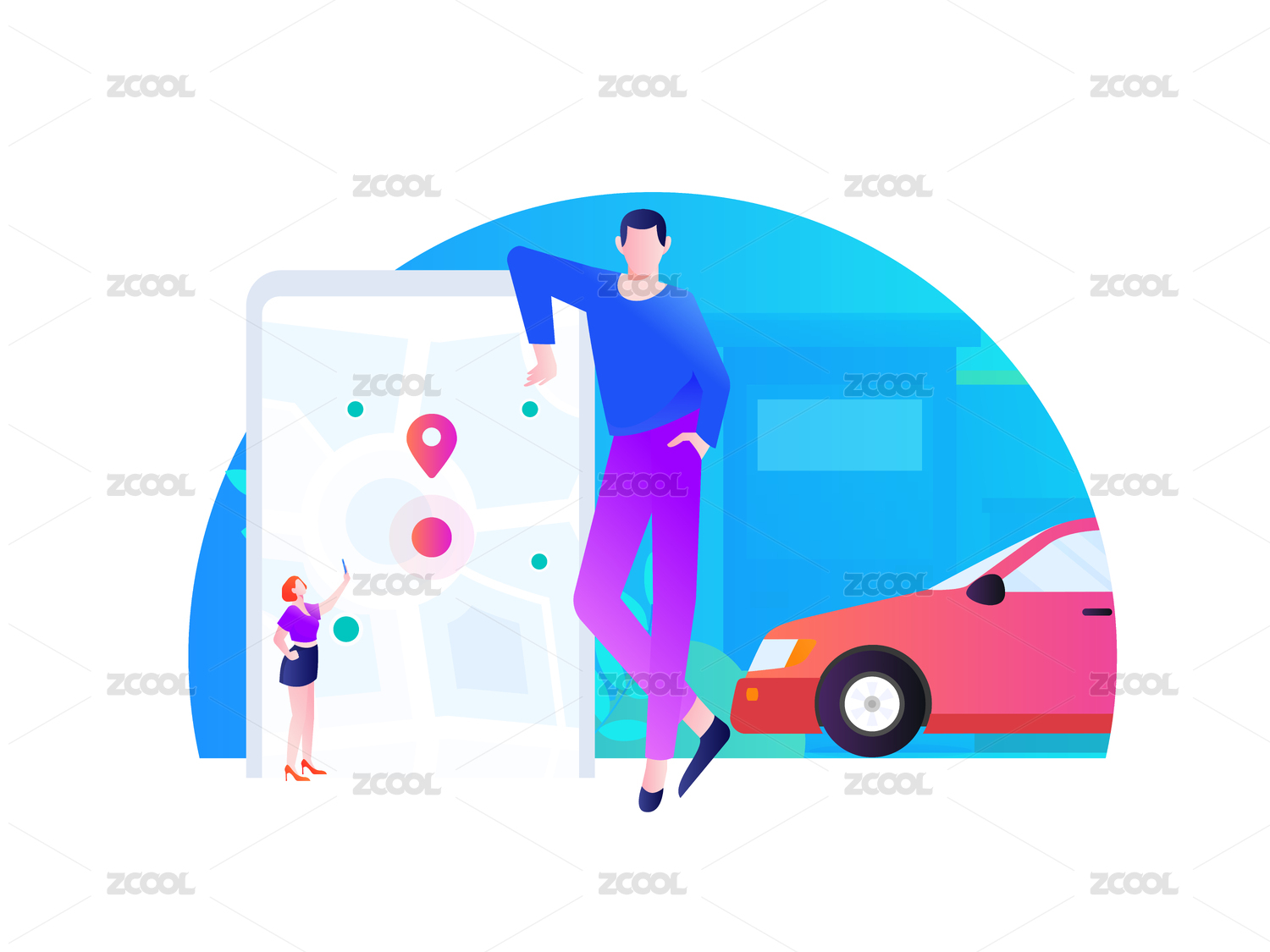 孟菲斯白領(lǐng)打車出行扁平矢量概念運(yùn)營插畫