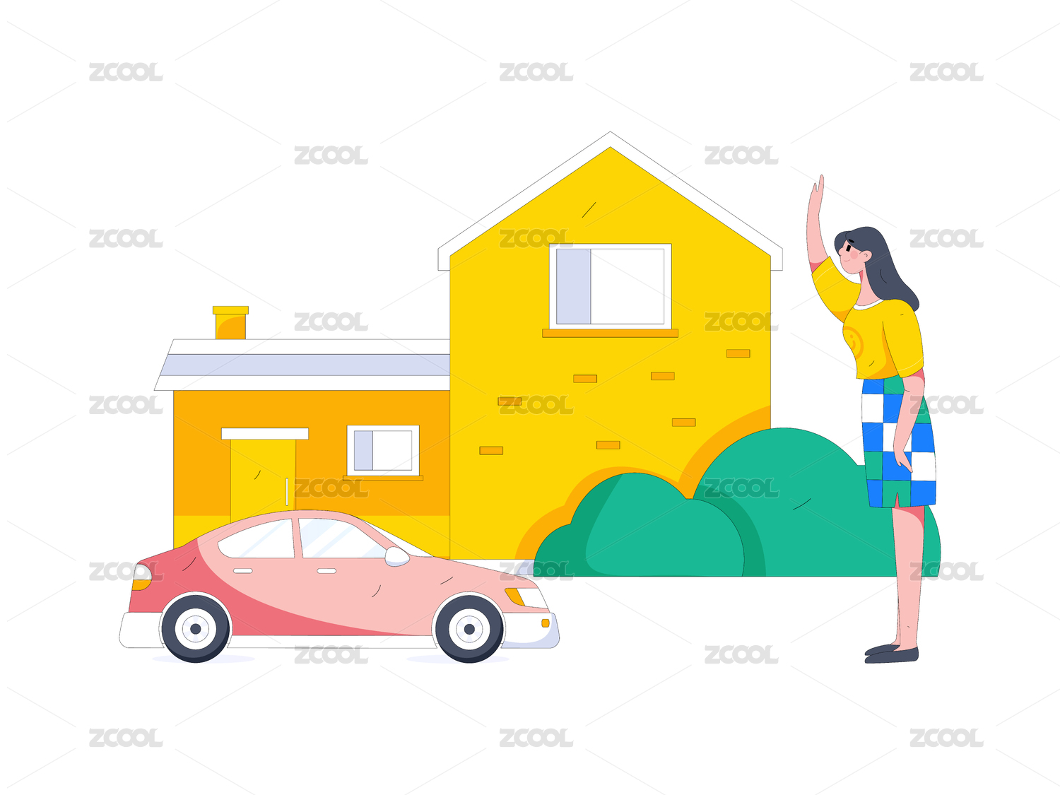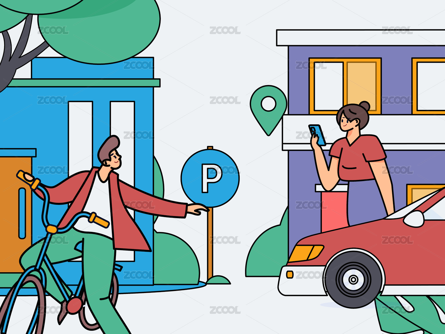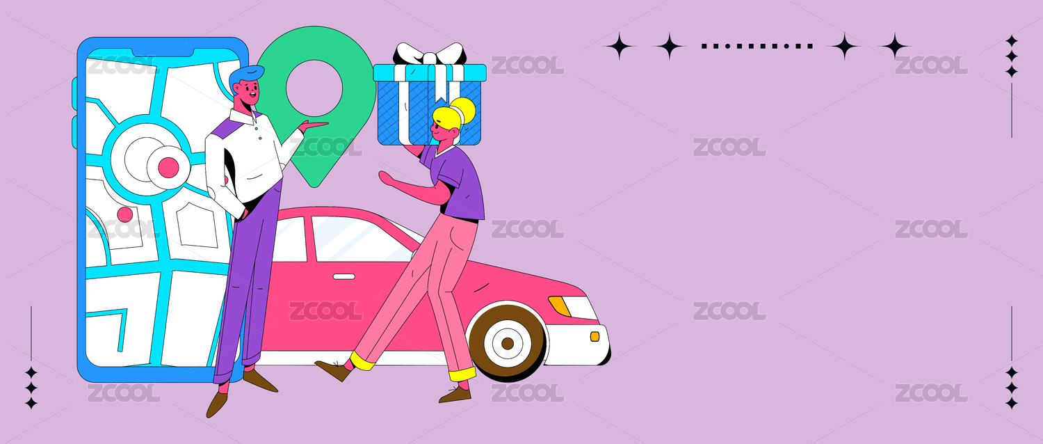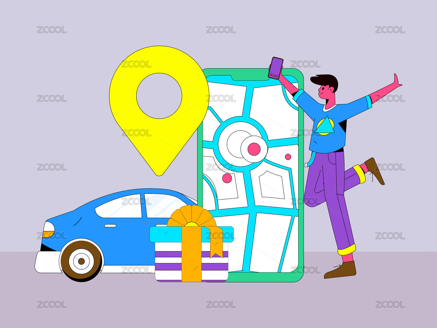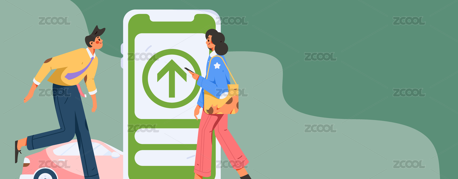 孟菲斯白領(lǐng)打車出行扁平矢量概念運(yùn)營插畫
