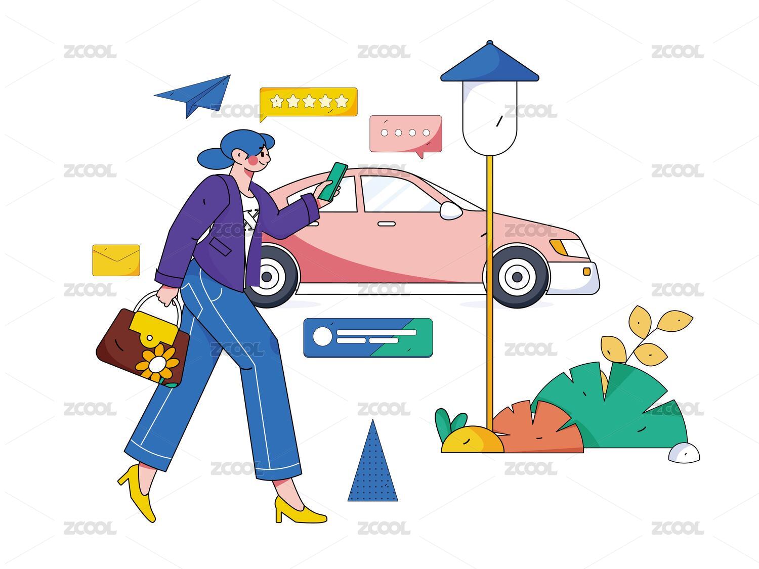 白領(lǐng)打車出行扁平矢量概念運(yùn)營插畫
