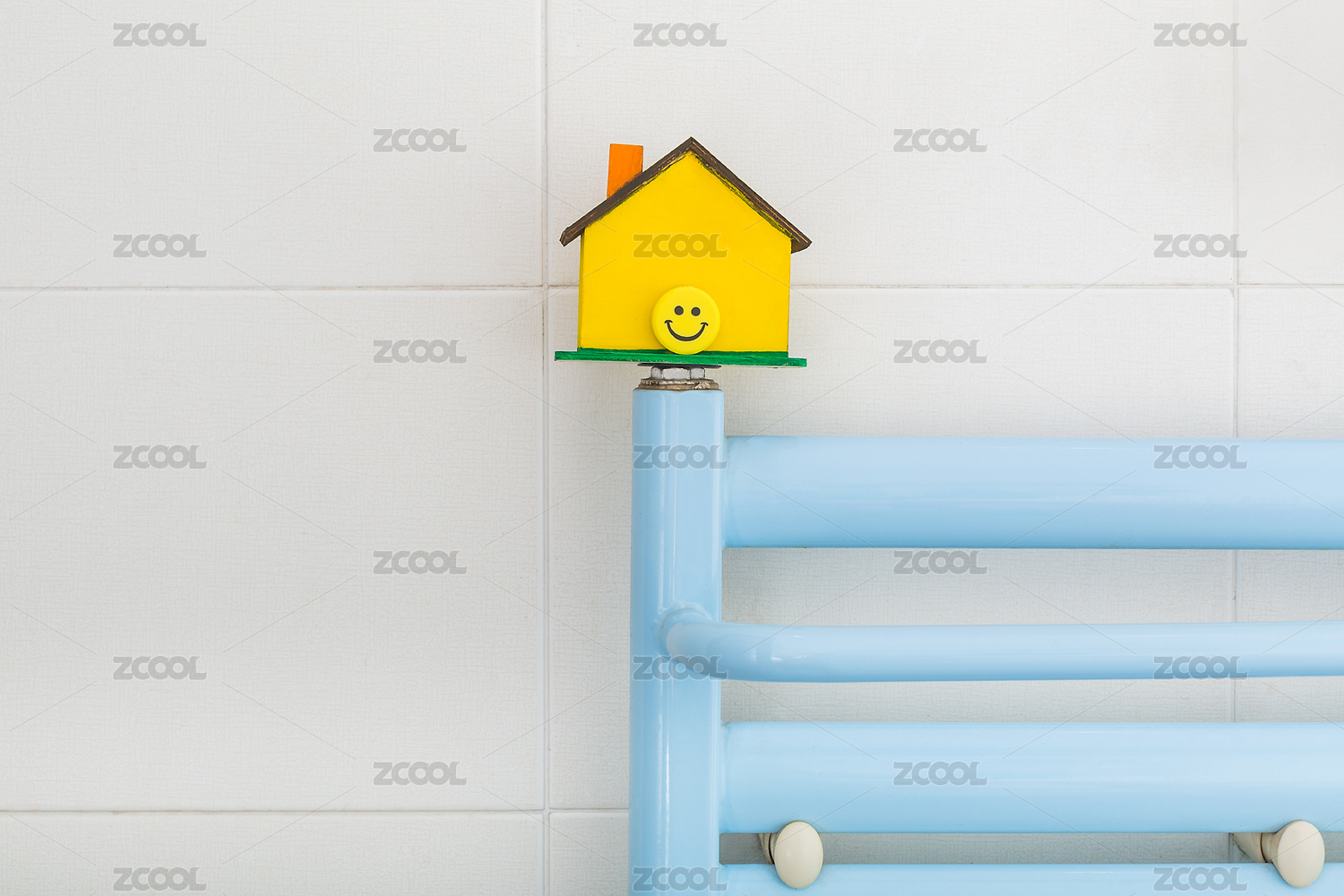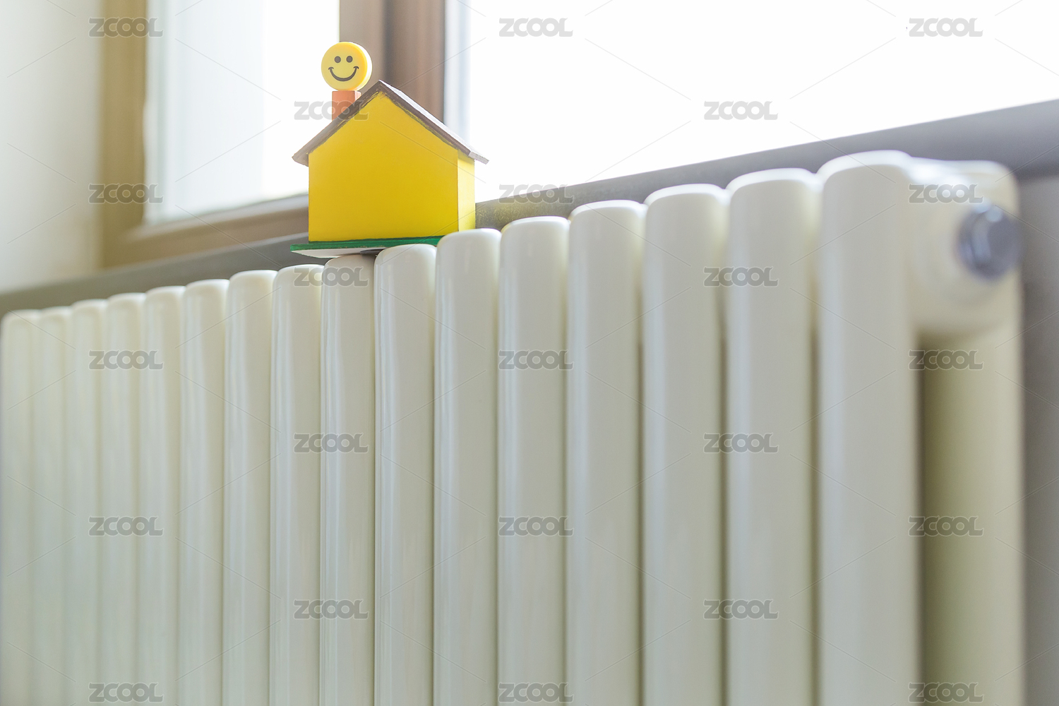 暖氣上的房子和笑臉,冬季北方供暖主題圖片
