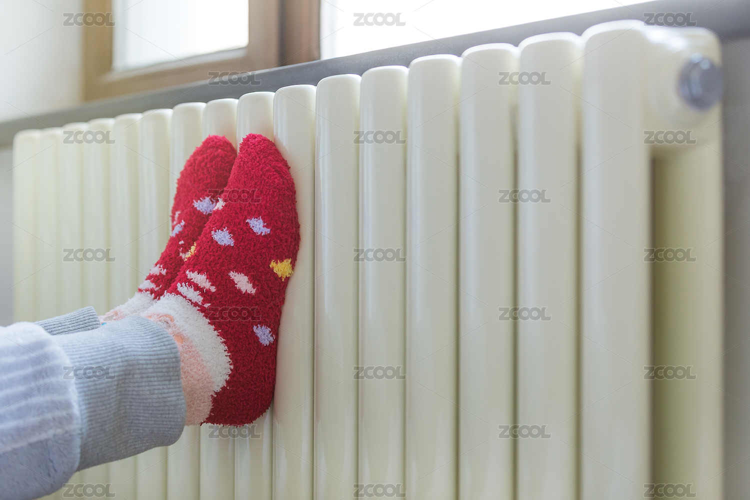 冬季北方開始供暖,把腳放在暖氣上取暖。