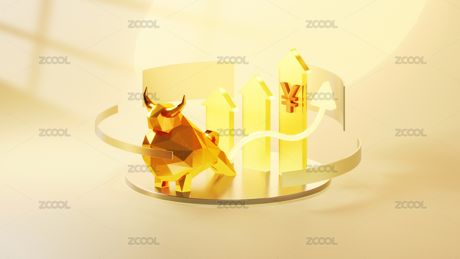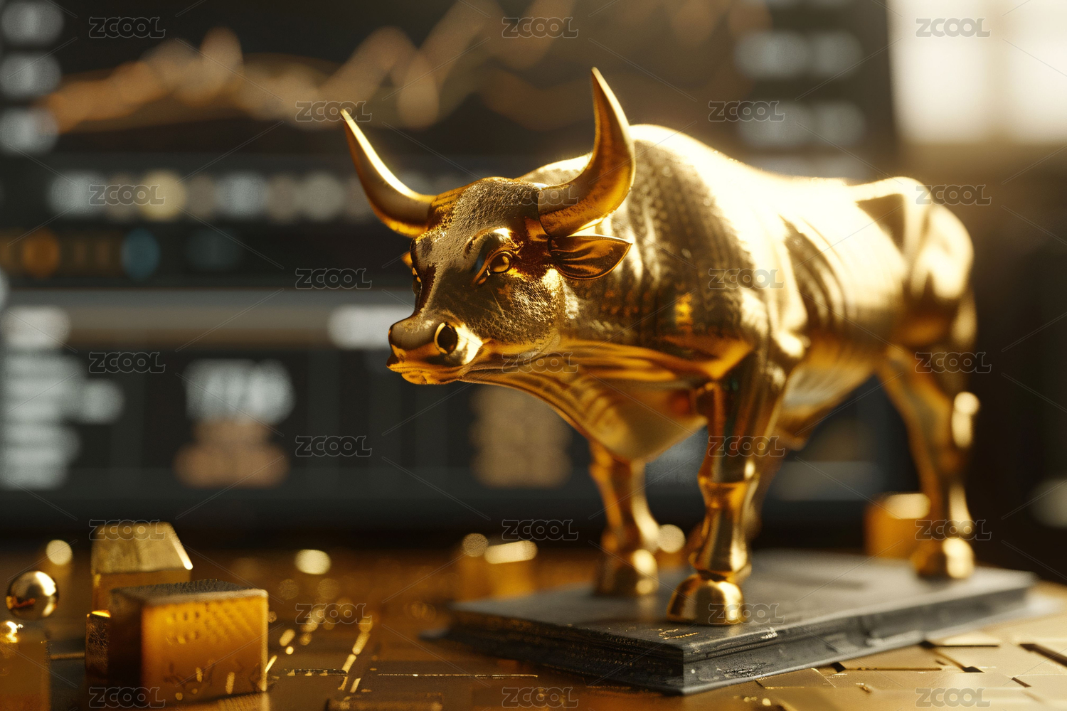 牛市股票股價(jià)上漲,金牛雕塑股市吉祥物概念