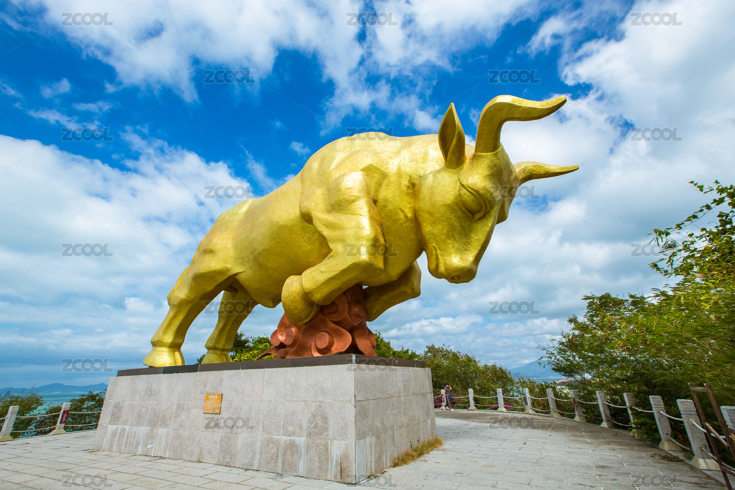 中國(guó)海南省三亞市西島牛鼻嶺金牛奔海雕像