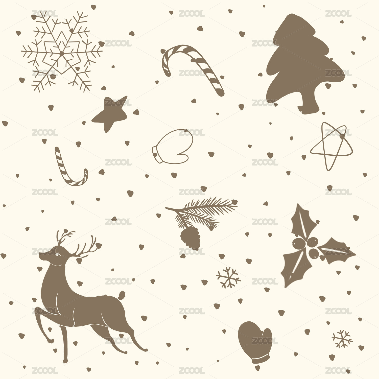 圣誕節(jié)元素矢量印花圖案