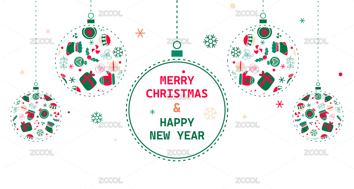 圣誕節(jié)裝飾燈球內填滿圣誕元素圖案扁平設計