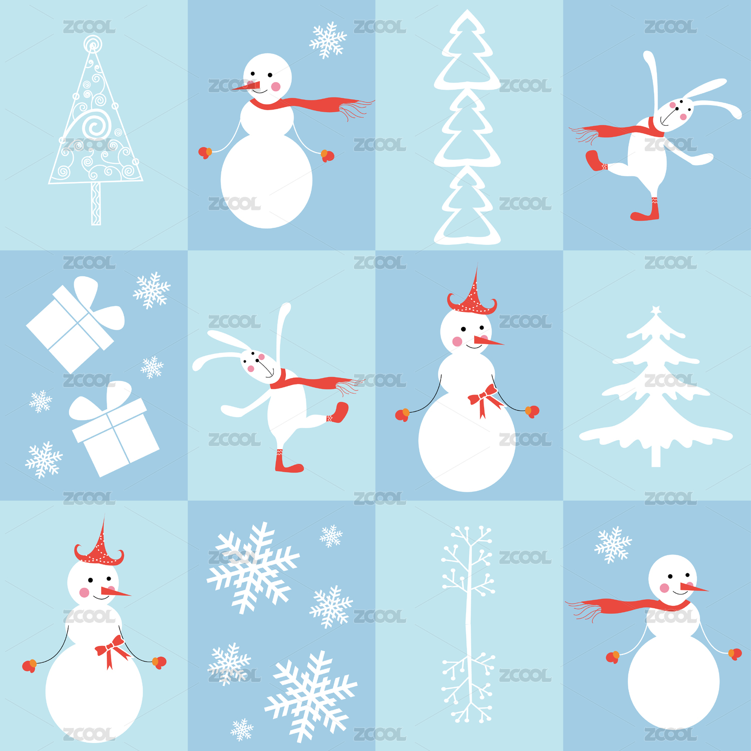 圣誕節(jié)日圖案裝飾 可愛卡通雪人兔子