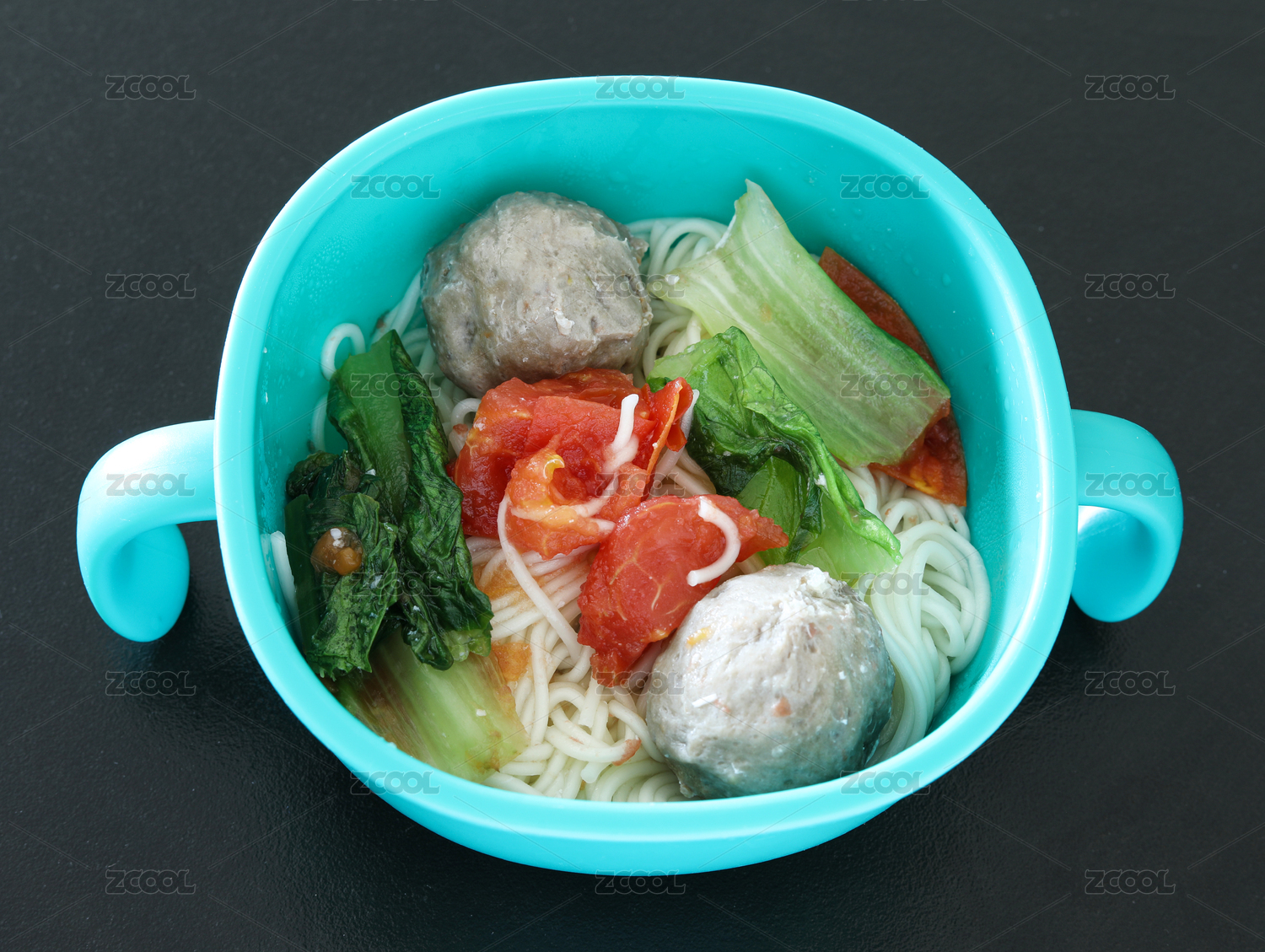 黑色桌面上的一碗營(yíng)養(yǎng)豐富的兒童餐早餐面條