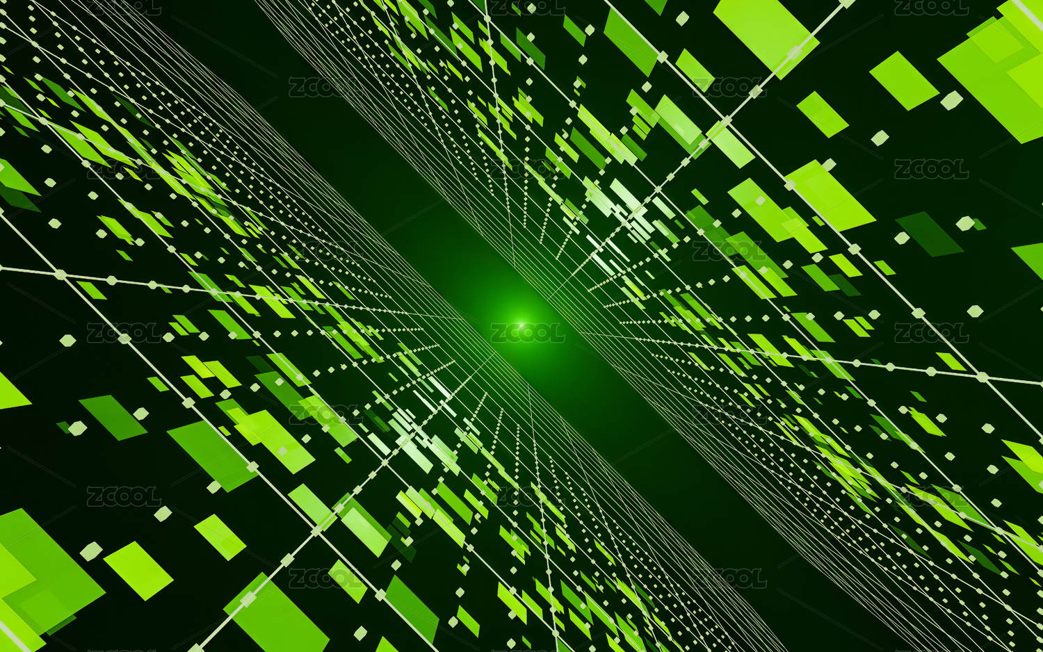 立體空間幾何形狀綠色網(wǎng)格全息圖
