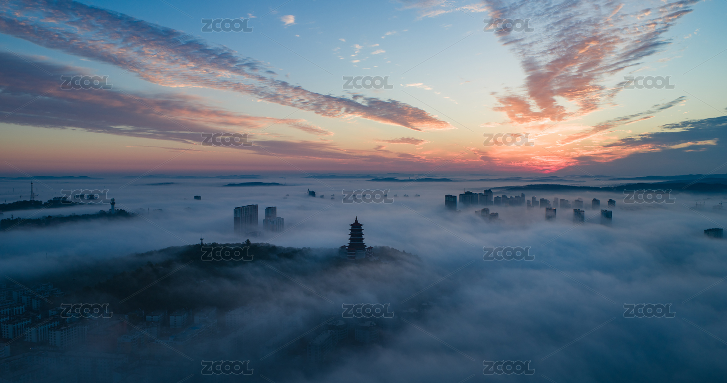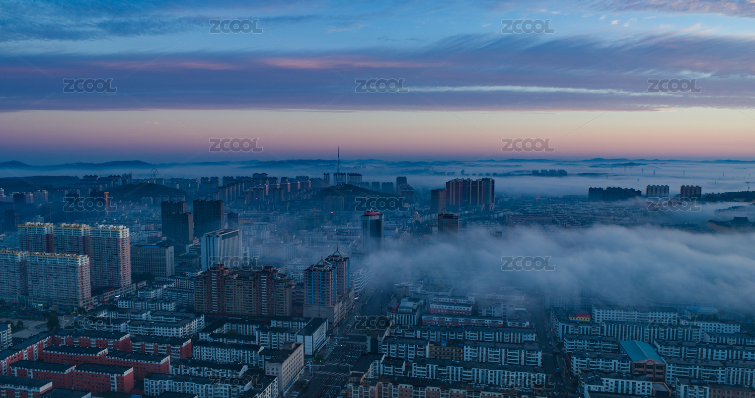 遼源清晨平流霧航拍素材