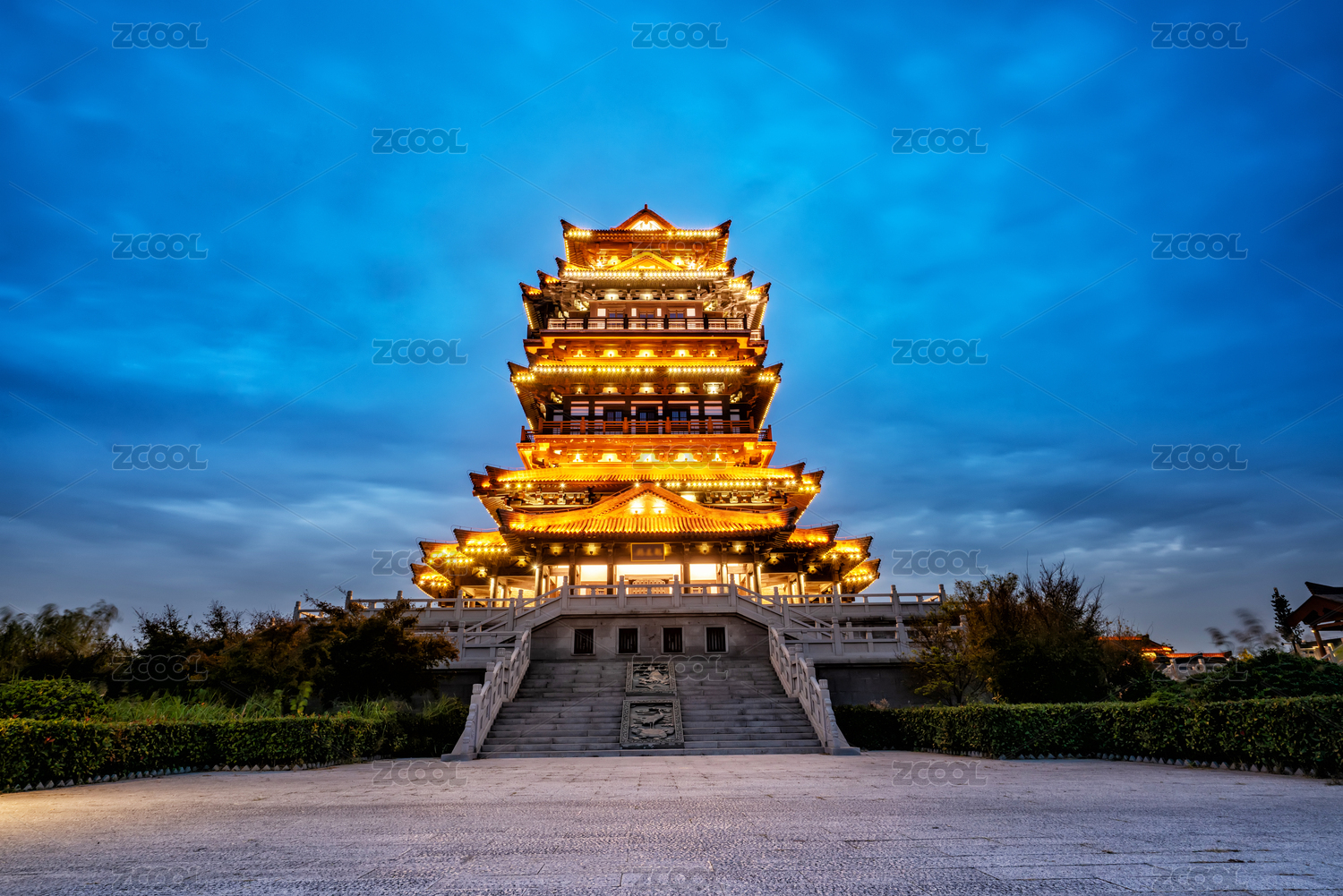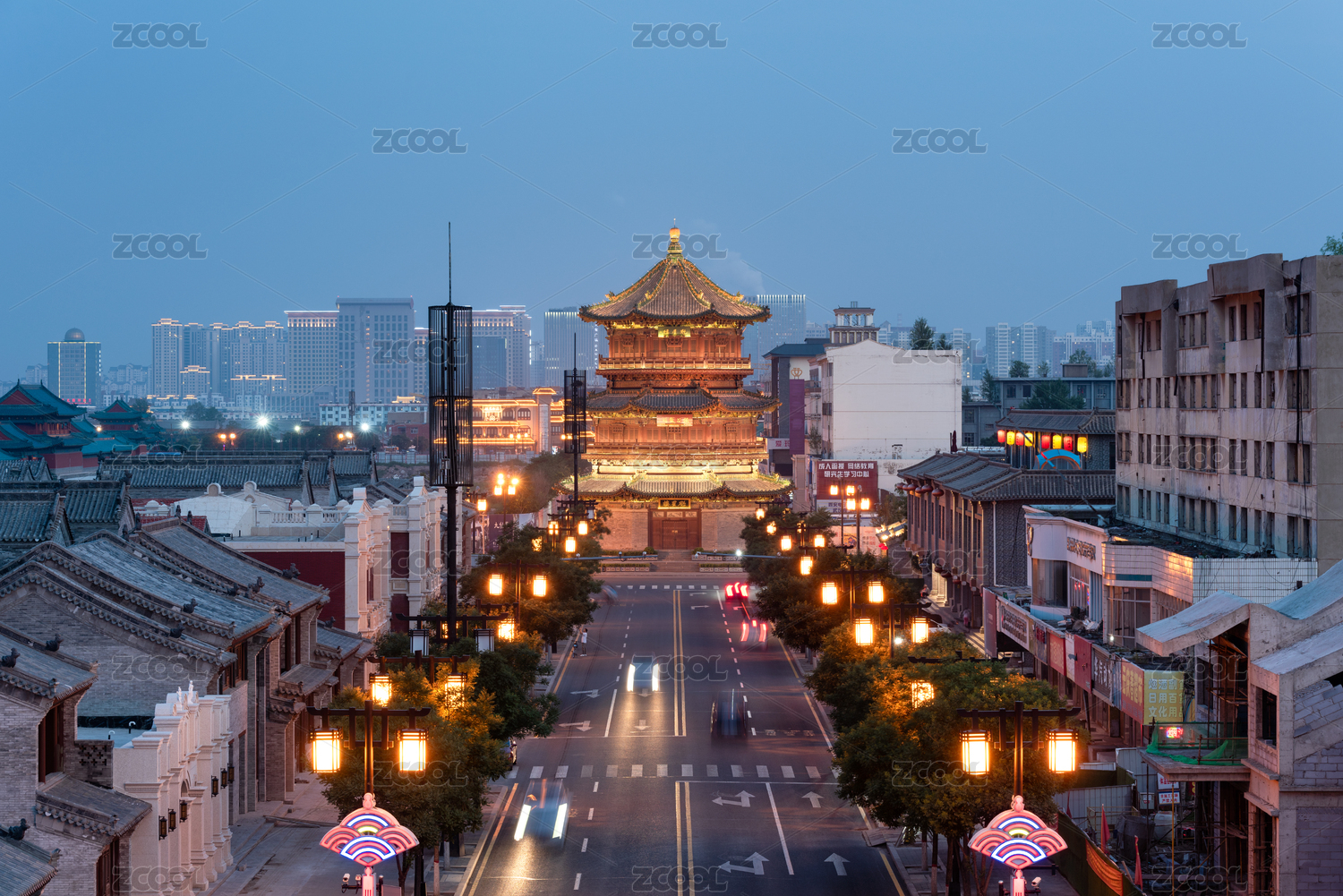 中國山西大同古城魁星樓藍(lán)調(diào)夜景