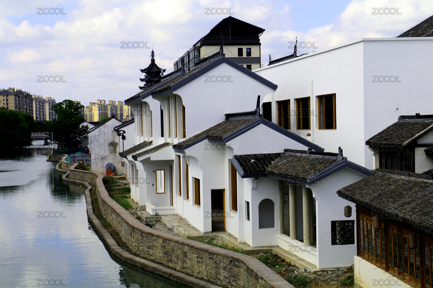 上海泗涇古鎮(zhèn)河岸邊的白墻黛瓦建筑群