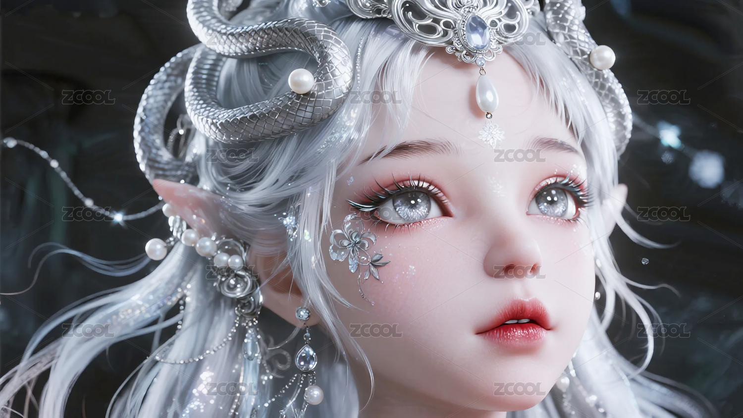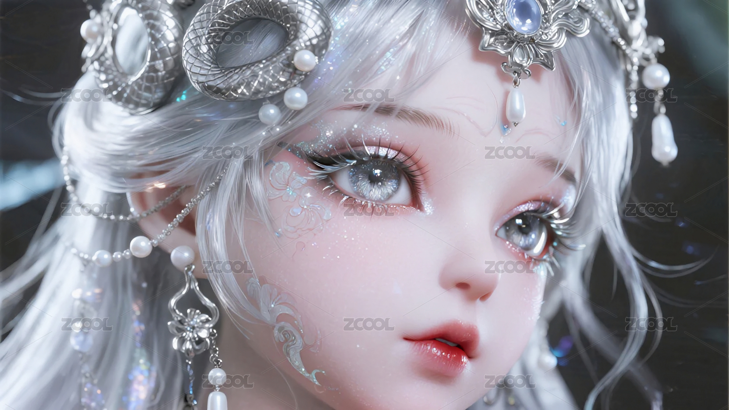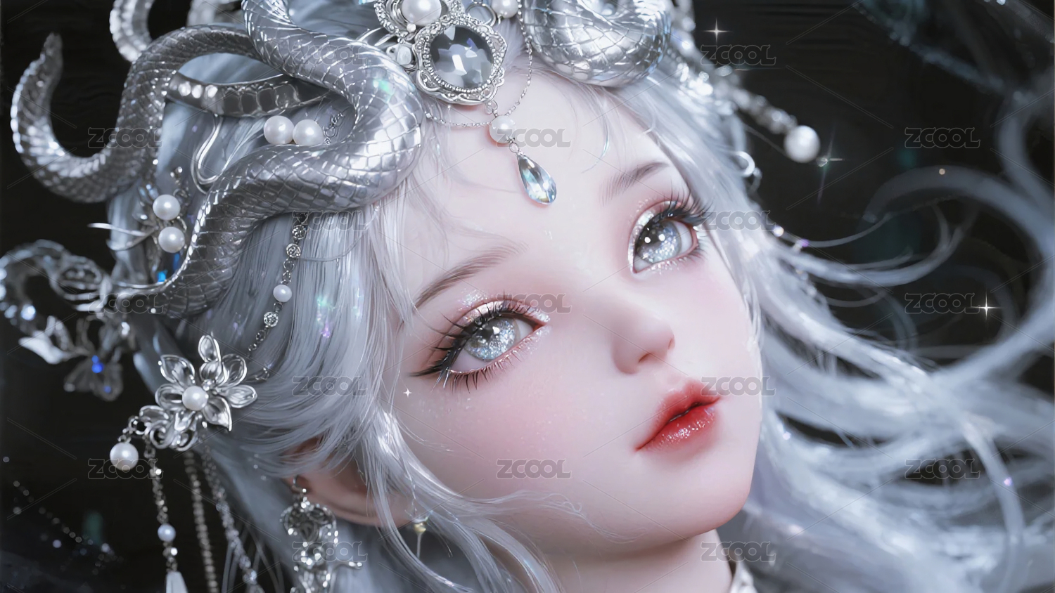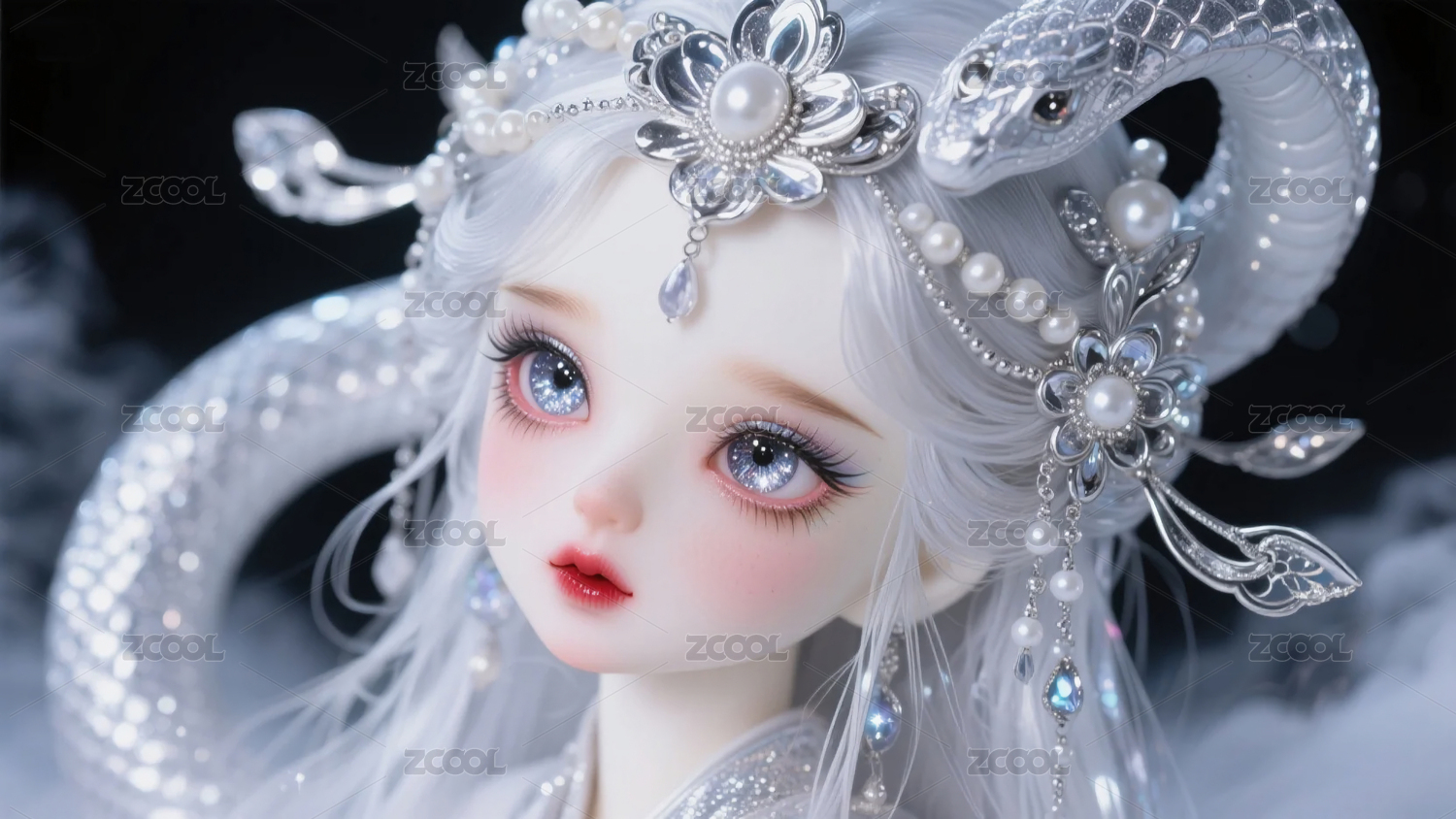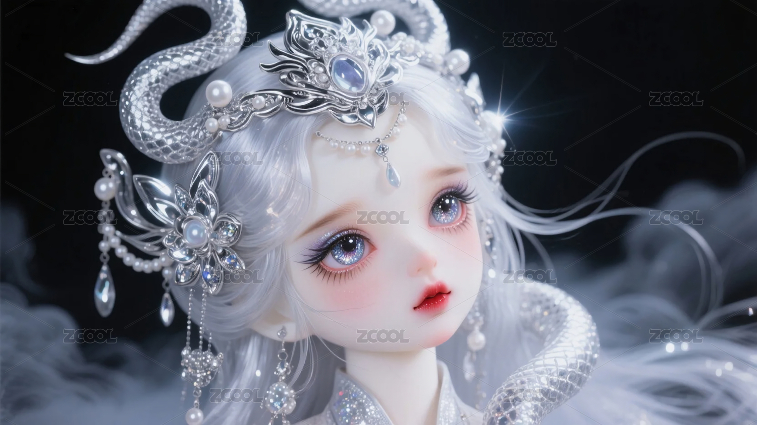 銀蛇女孩插畫