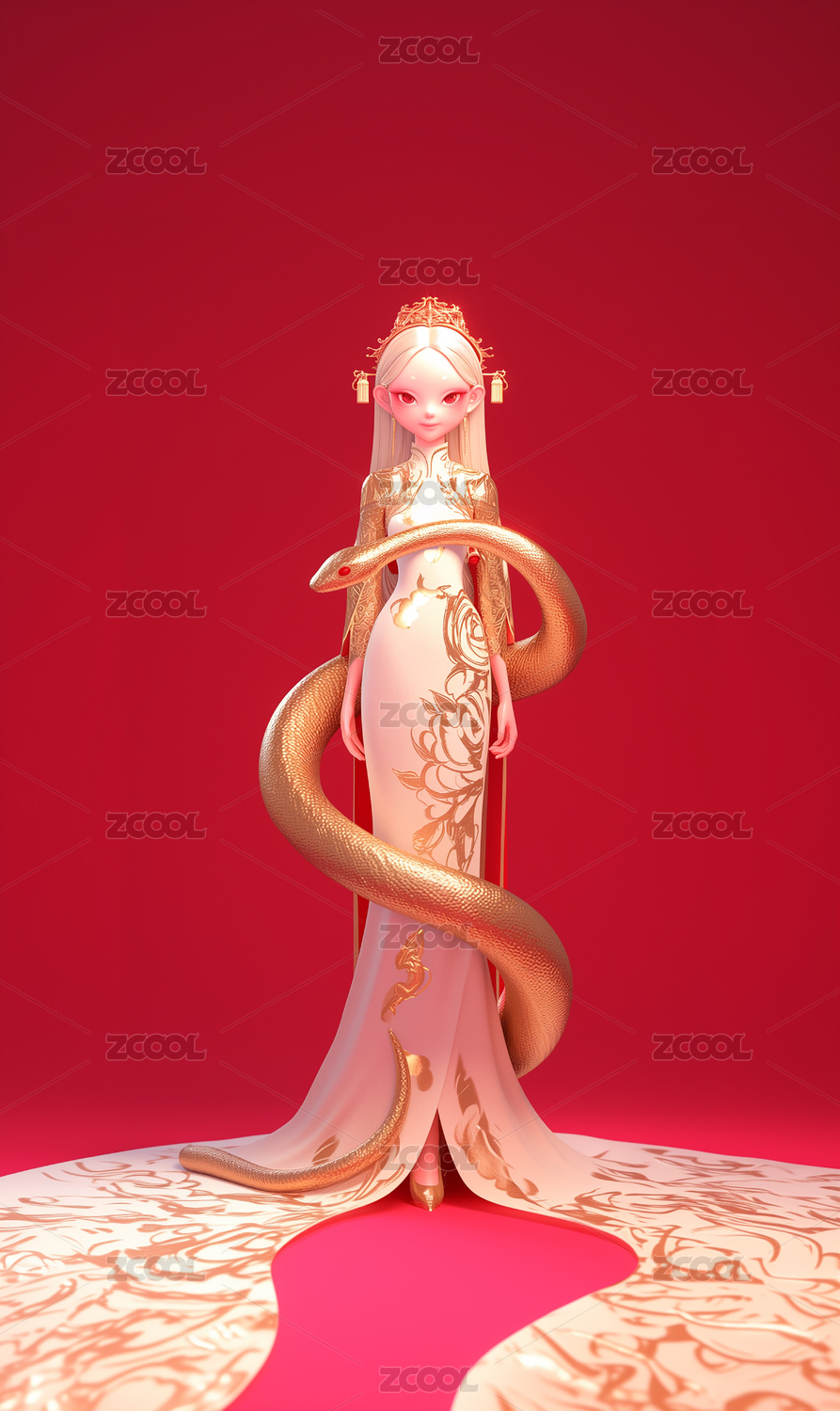 中式國潮風(fēng)新年蛇年蛇女卡通插畫