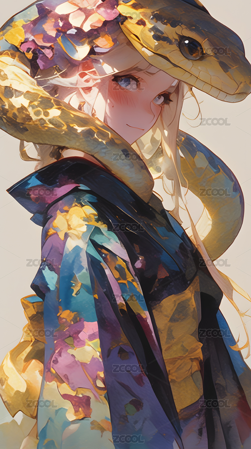 白蛇纏身的少女