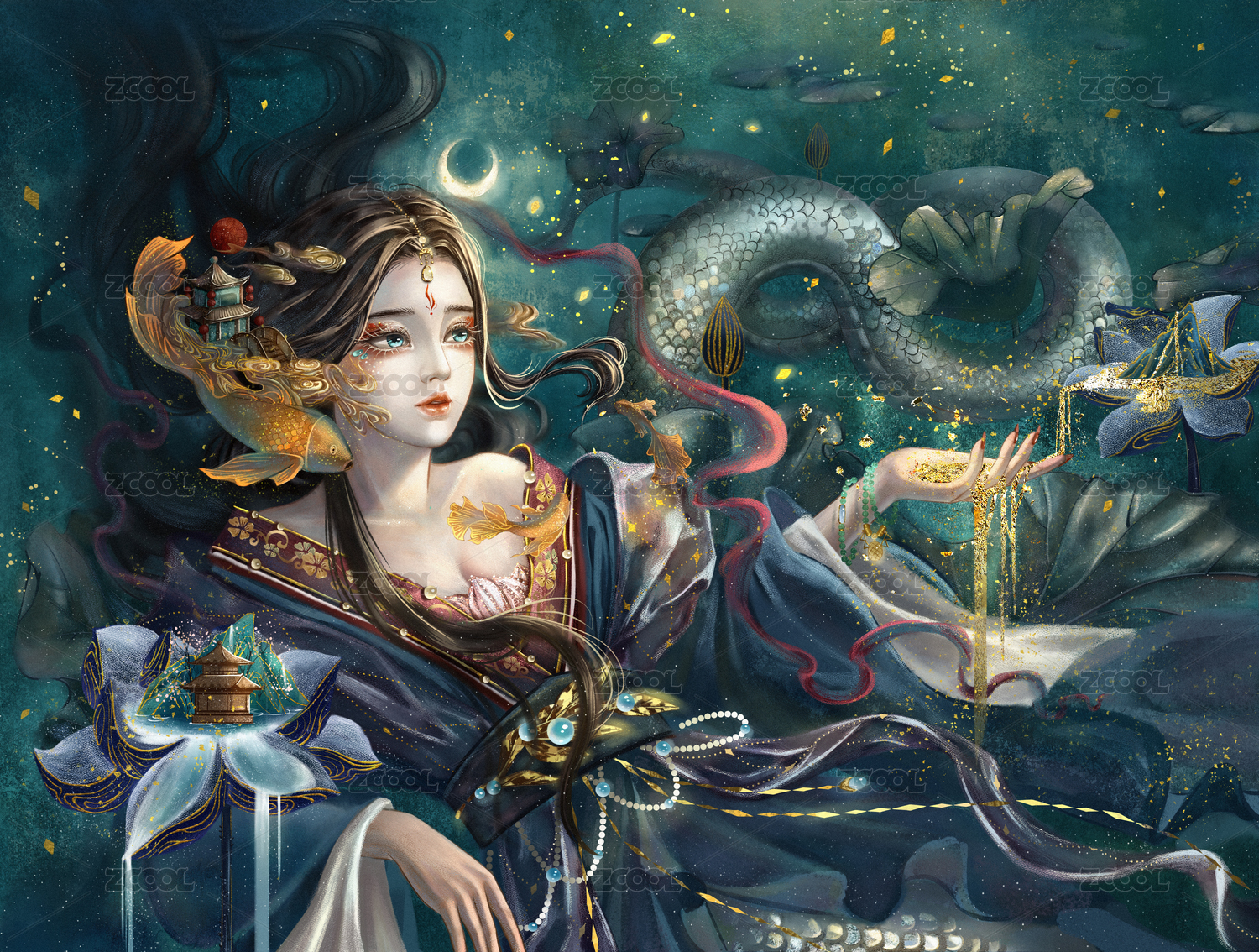 一位圣潔的蛇女正在為眾生祈福