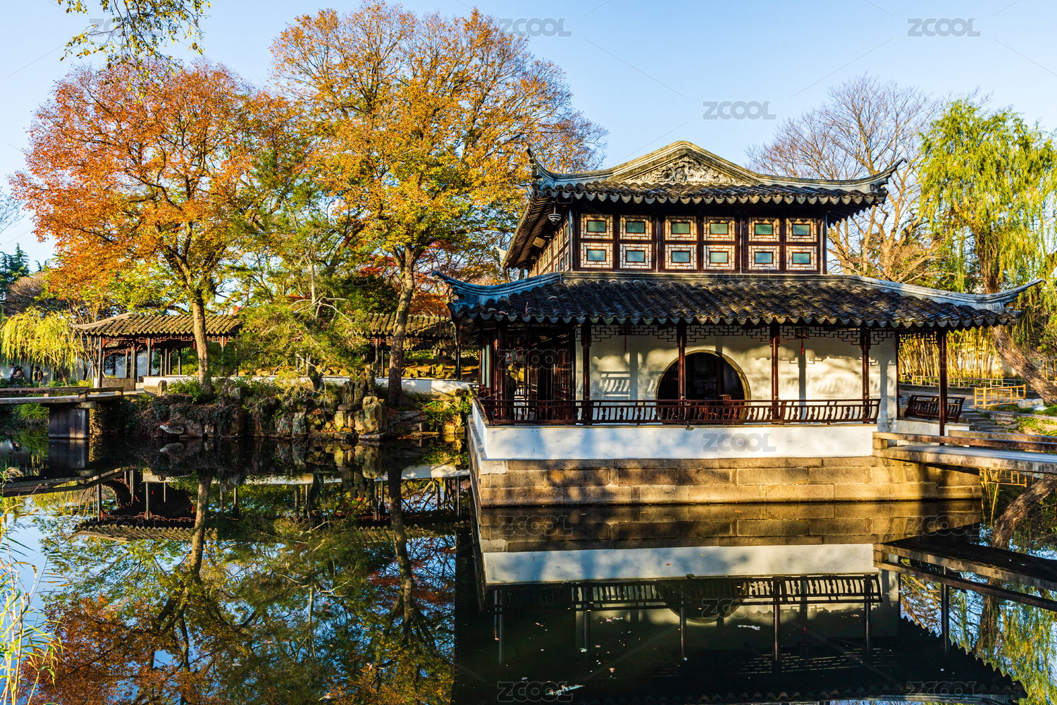 中國(guó)江蘇蘇州園林拙政園秋季