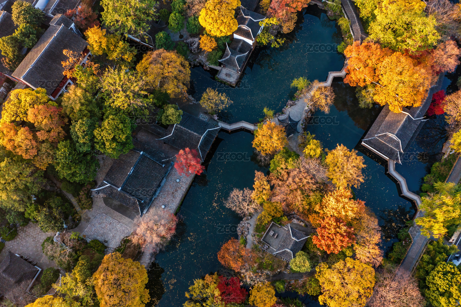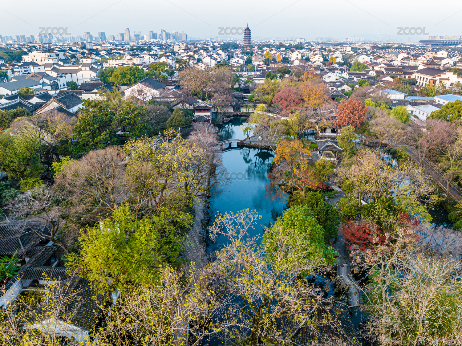 中國(guó)江蘇蘇州園林拙政園秋季航拍