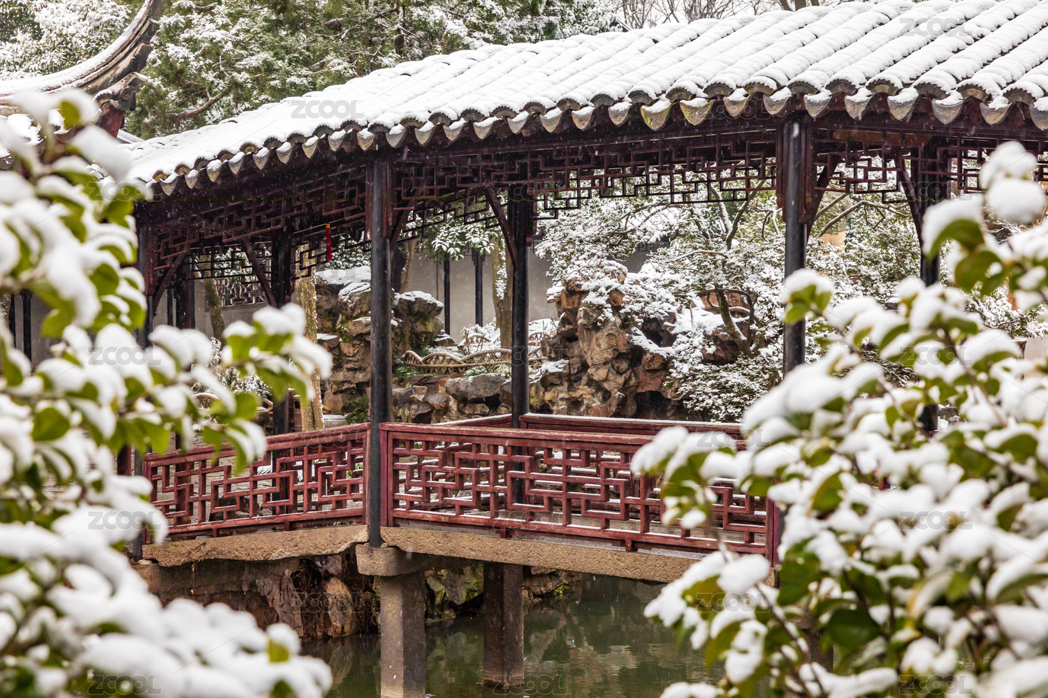 中國(guó)江蘇蘇州園林拙政園冬季雪景