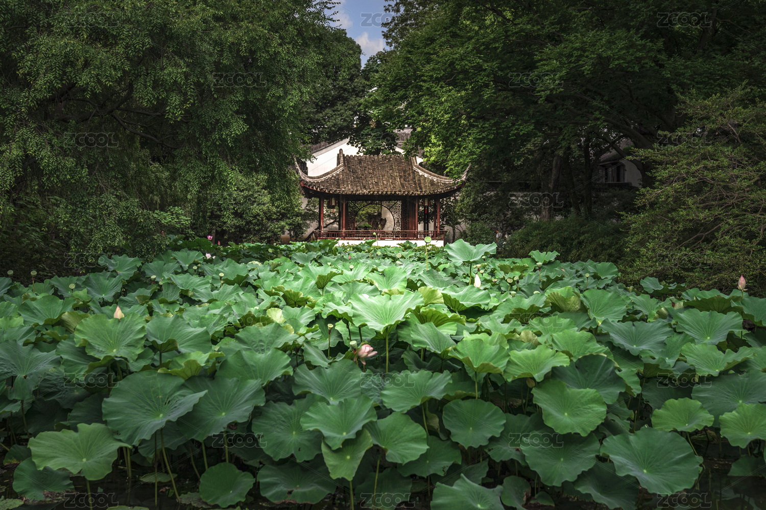 中國(guó)江蘇蘇州古典園林拙政園夏季荷花
