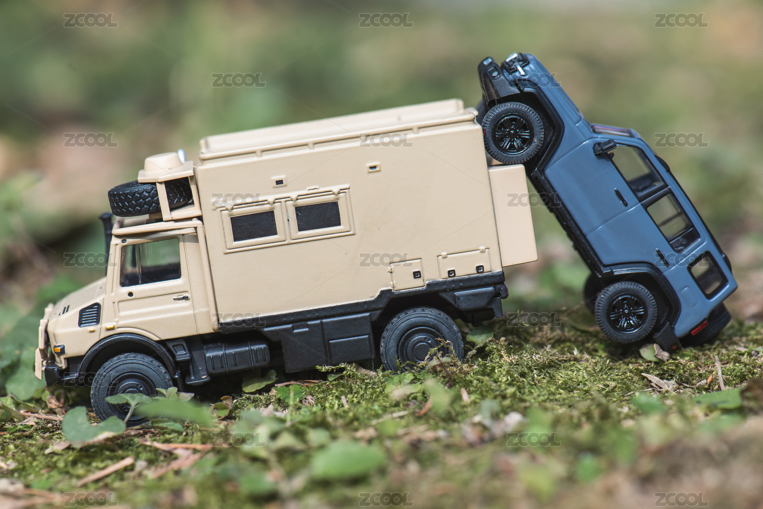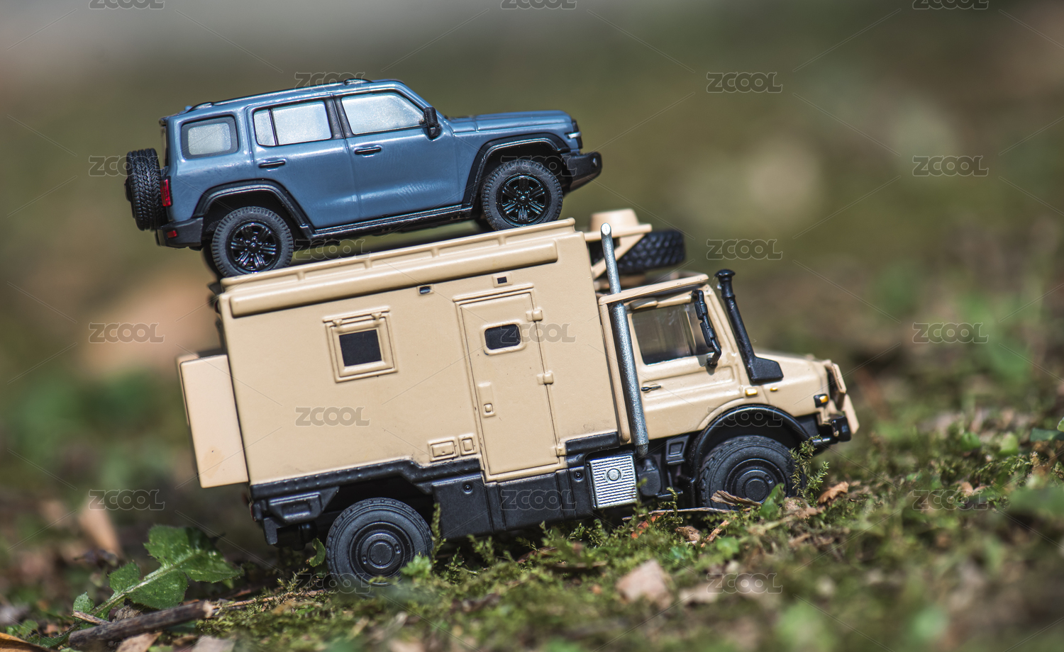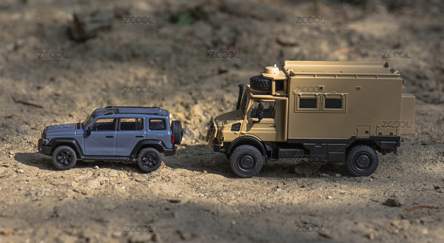 一輛越野車行駛在草原上遠處是地平線和天際線