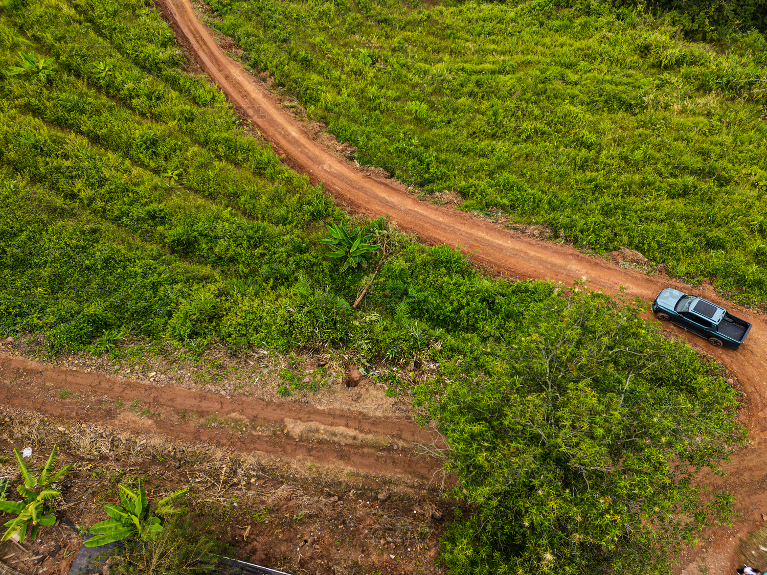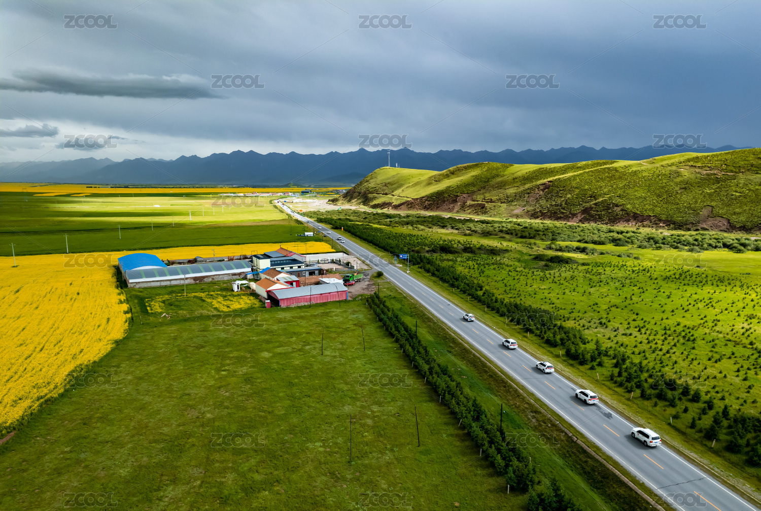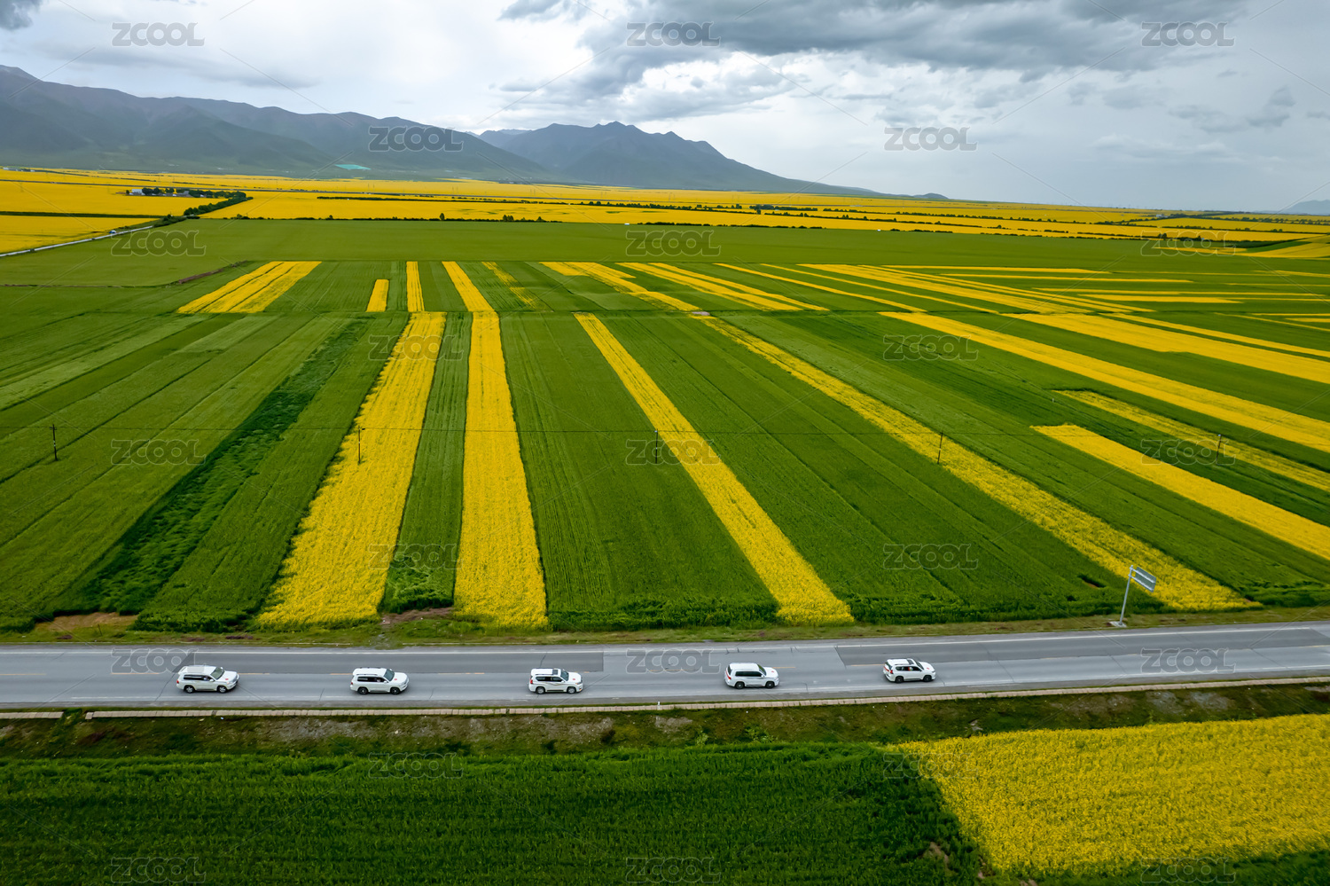 一輛越野車行駛在草原上遠處是地平線和天際線