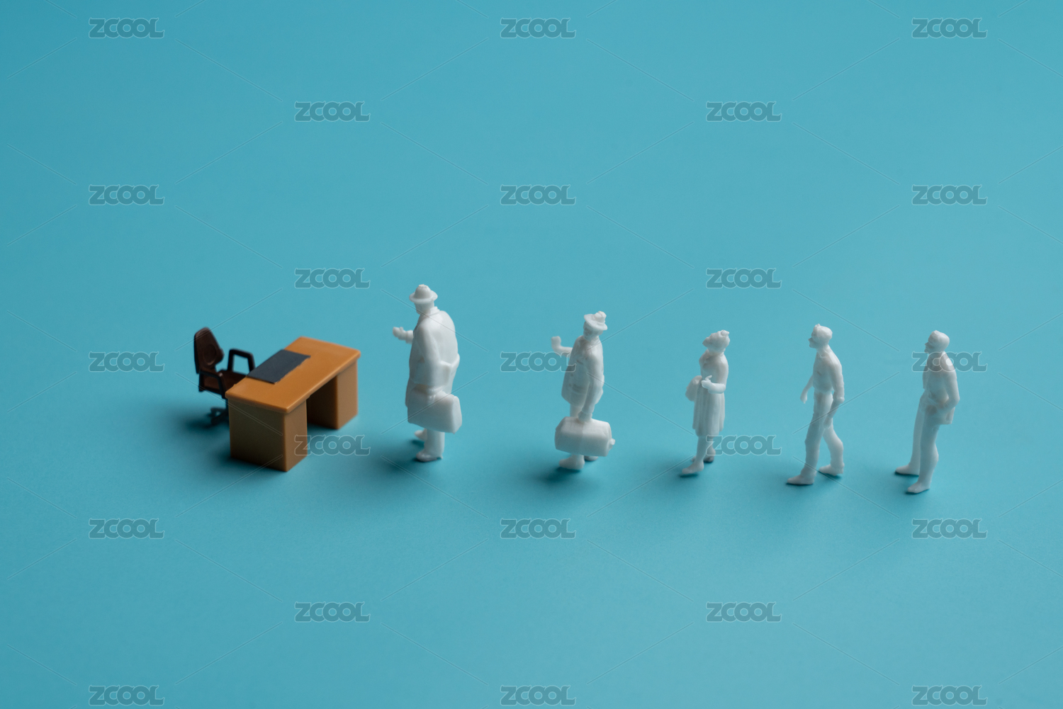 一排素裝排隊(duì)等待面試的人群微縮創(chuàng)意