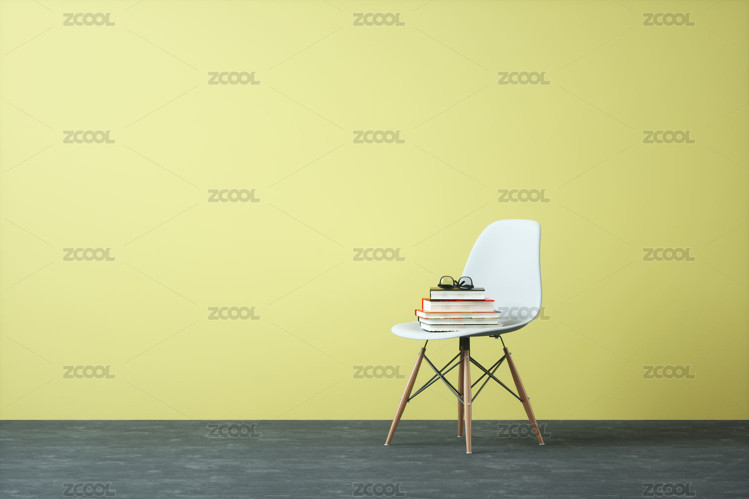 黃色背景里的一把白色椅子,極簡家裝