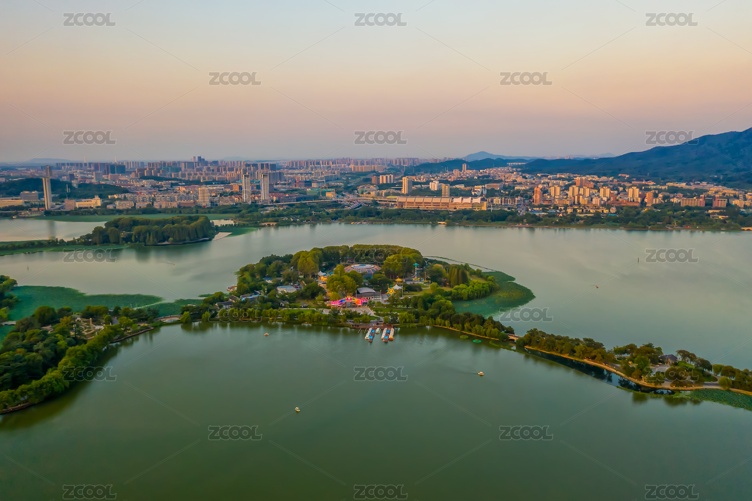 南京玄武湖日出前的晨曦