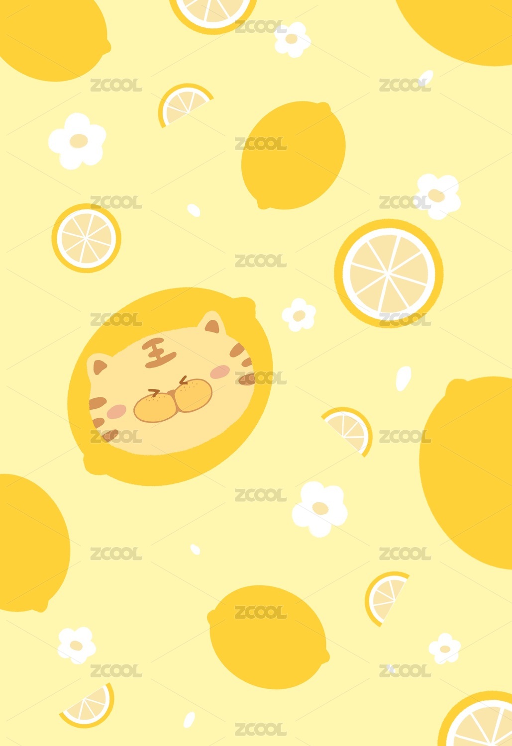 虎年水果檸檬壁紙新年插畫