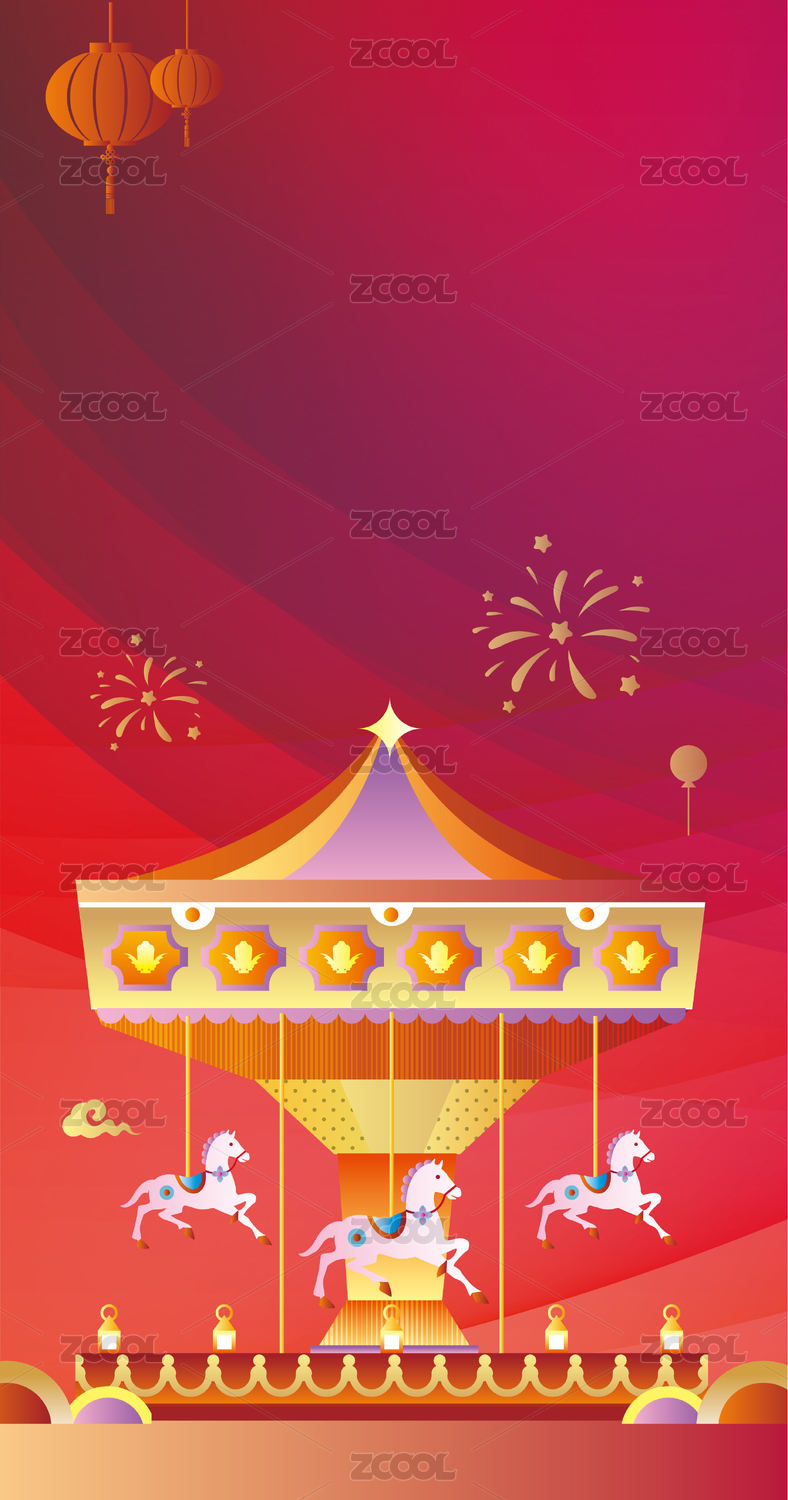 新年旋轉(zhuǎn)木馬插畫壁紙模板