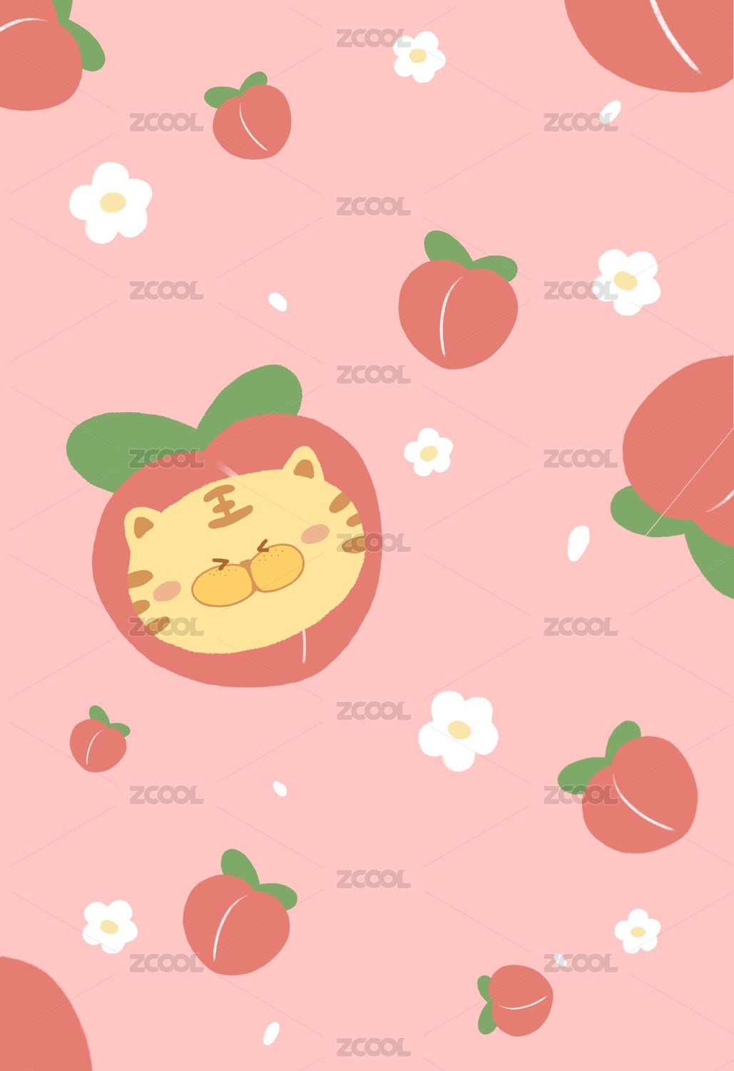 虎年水果桃子壁紙新年插畫