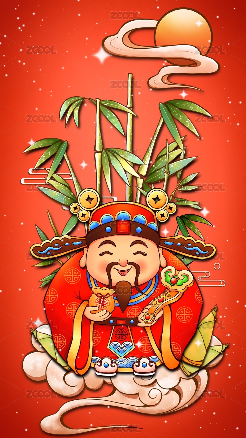 新年福?壽喜財(cái)系列插畫祿星公壁紙