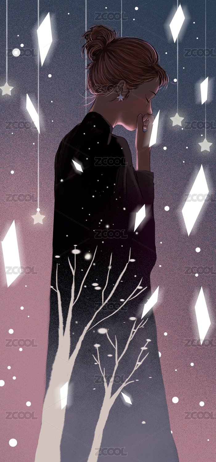 沉思的星空女孩