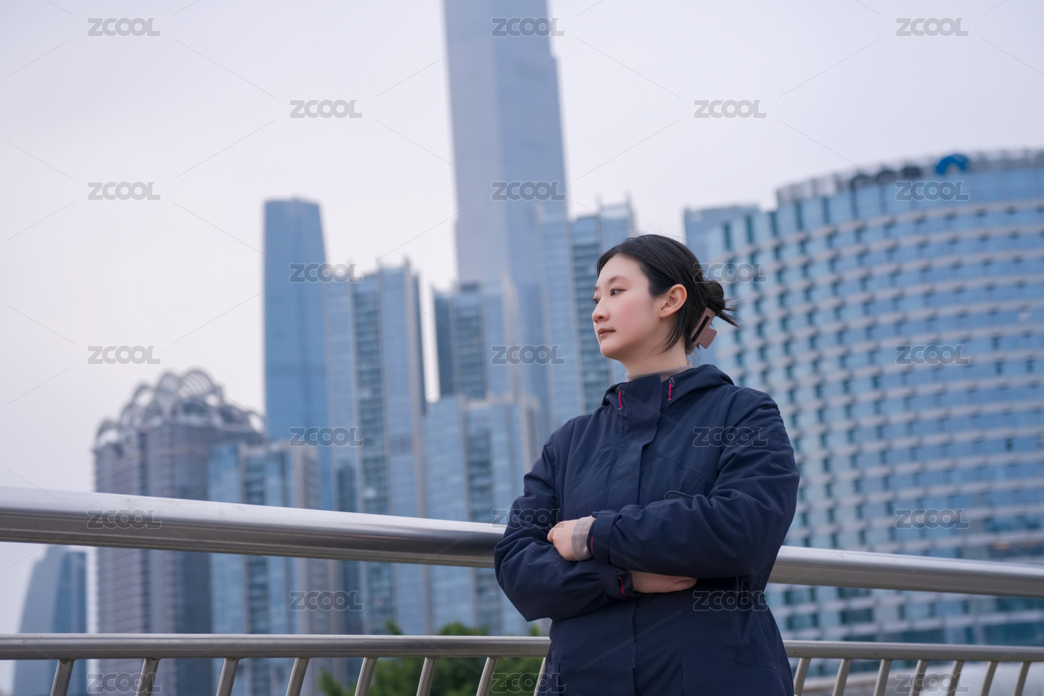 自信的女商人凝視城市天際線
