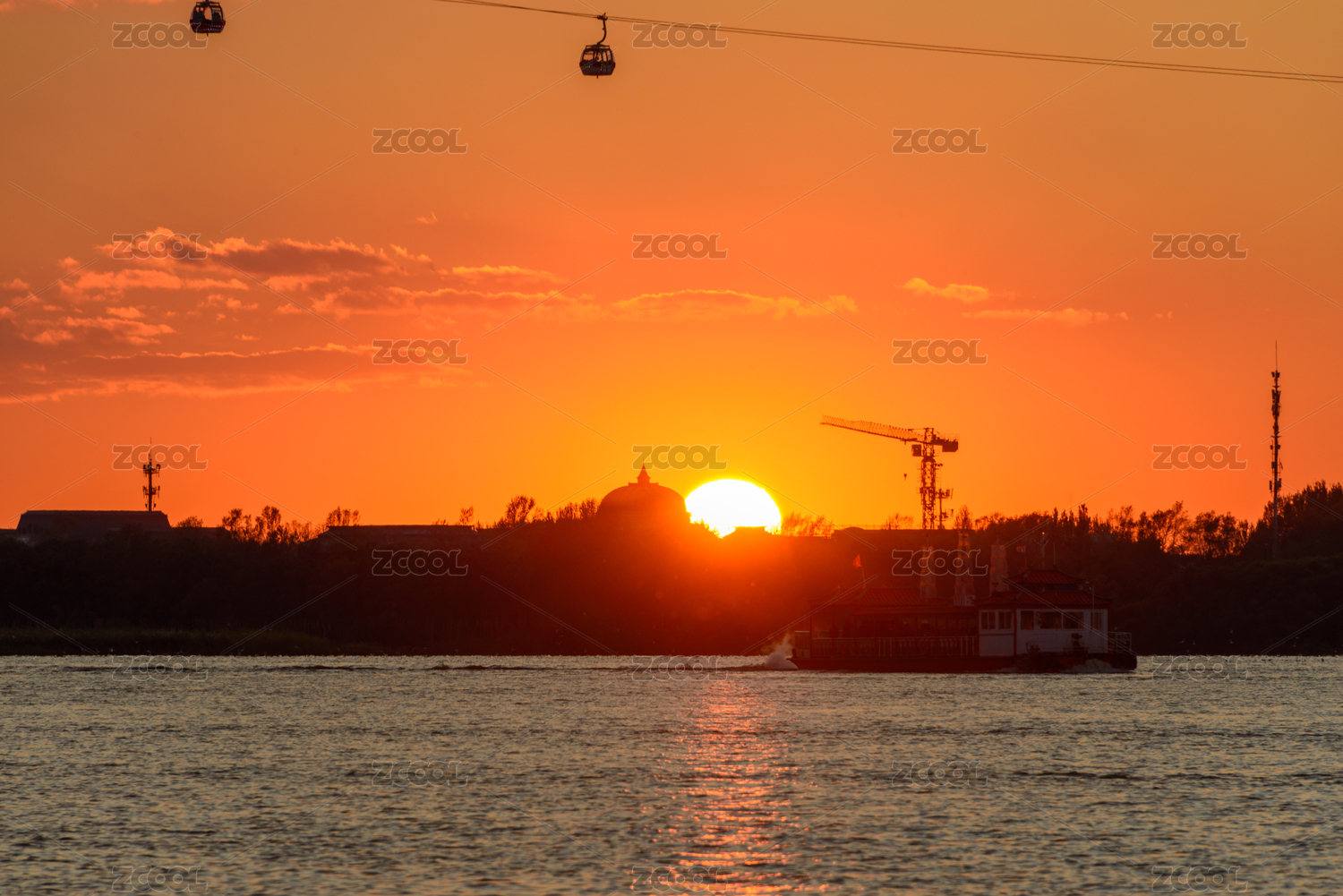 黑龍江哈爾濱松花江日落景色