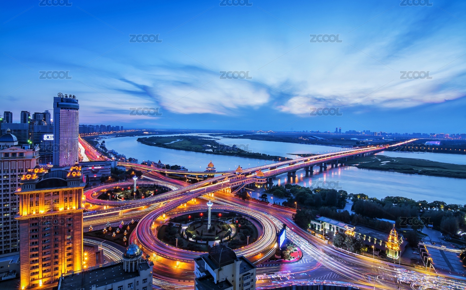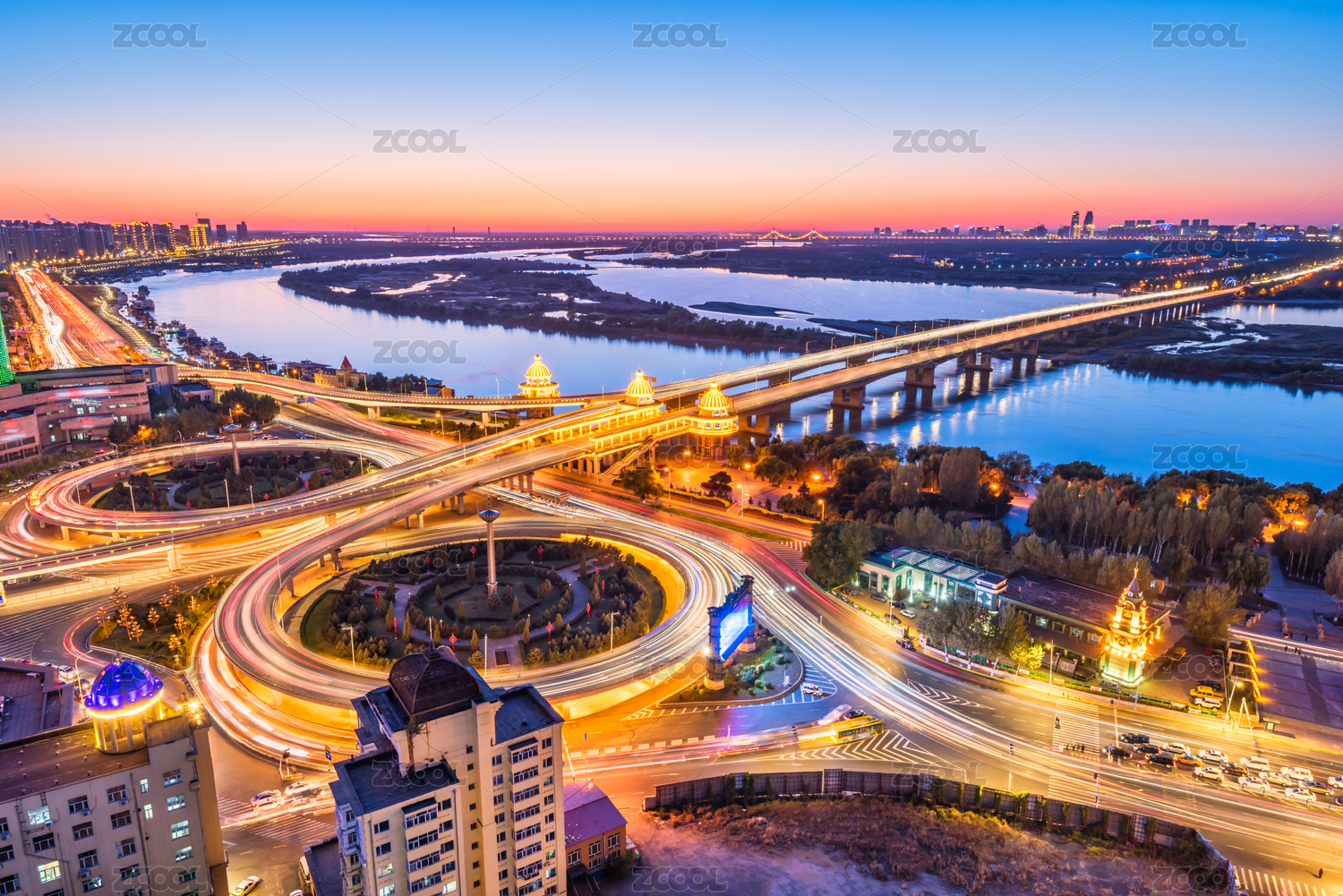 哈爾濱松花江公路大橋建筑夜景