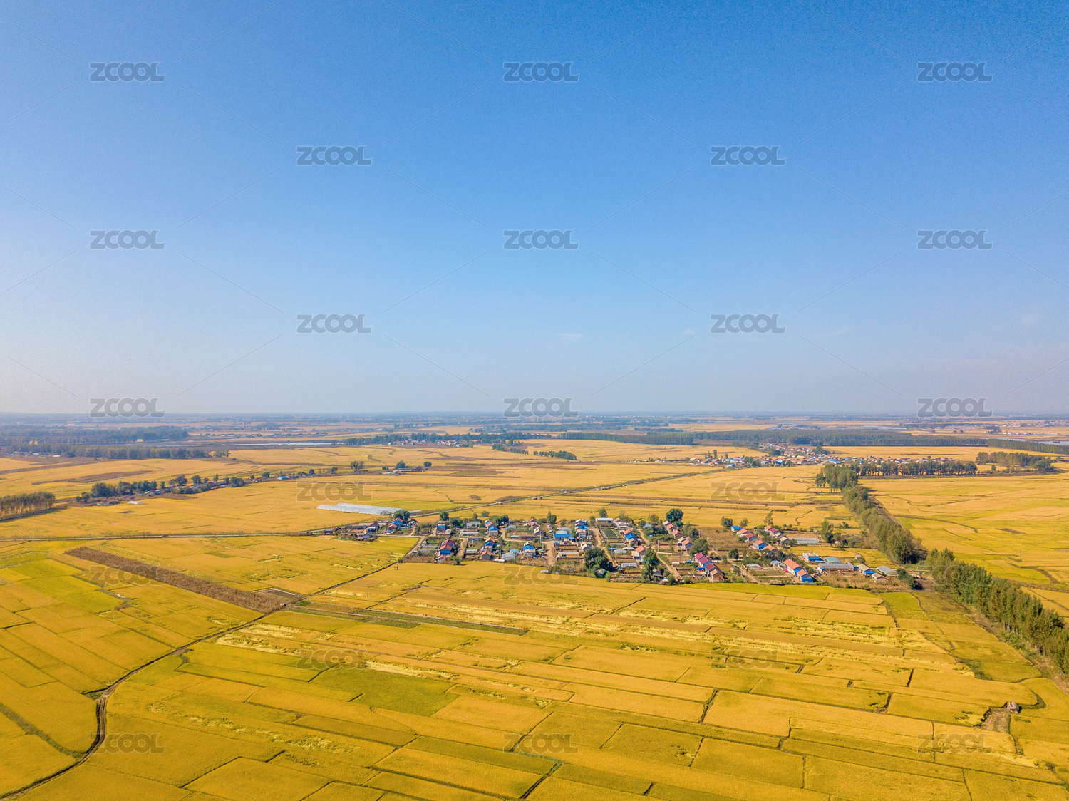 航拍東北松花江畔成熟的稻田