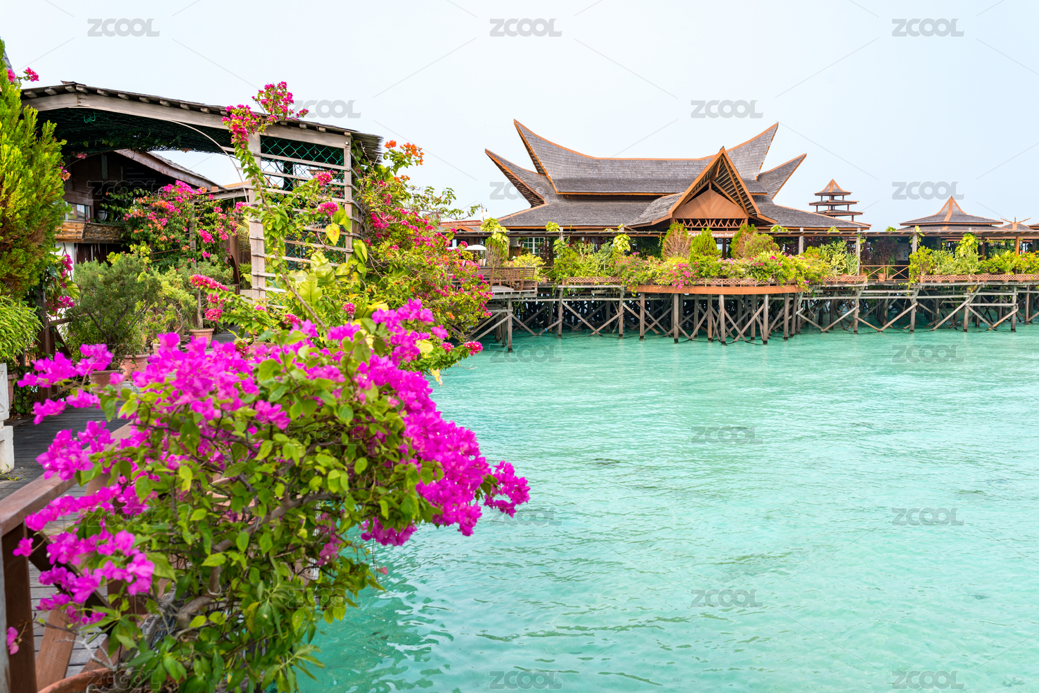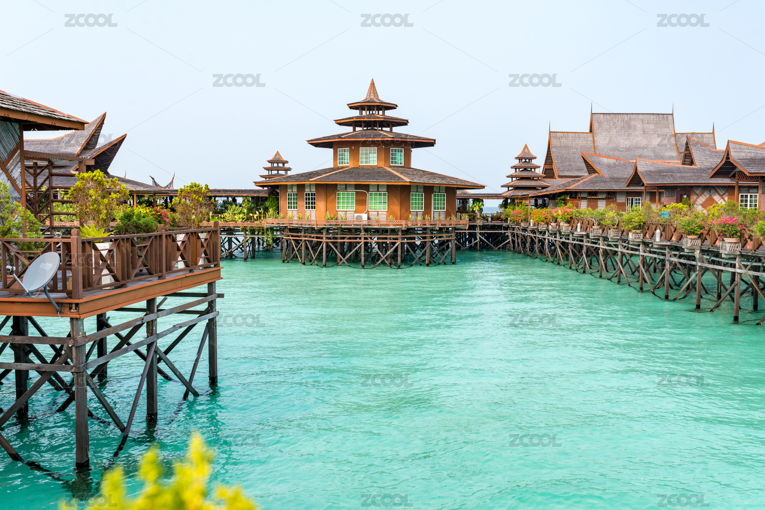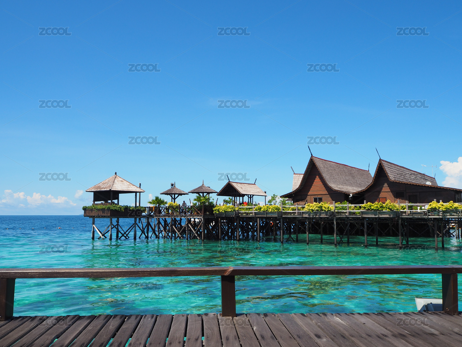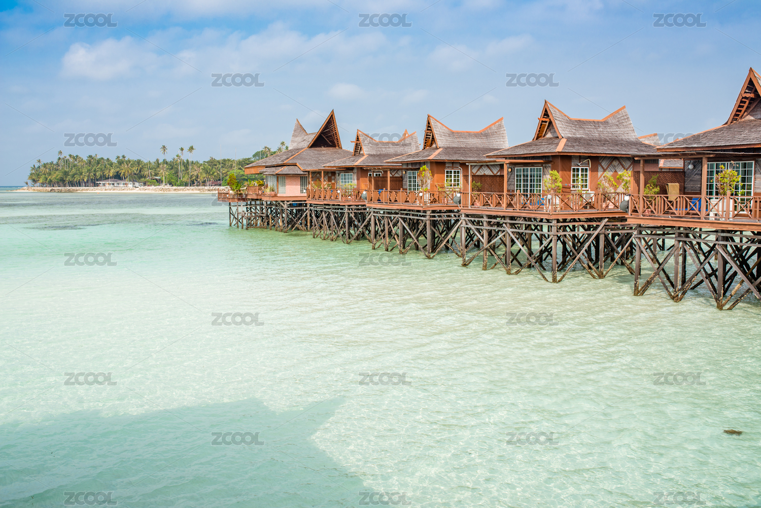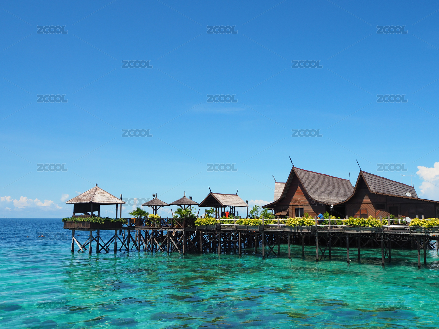夏季白天馬來(lái)西亞馬步島海上度假別墅