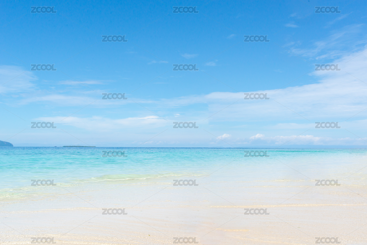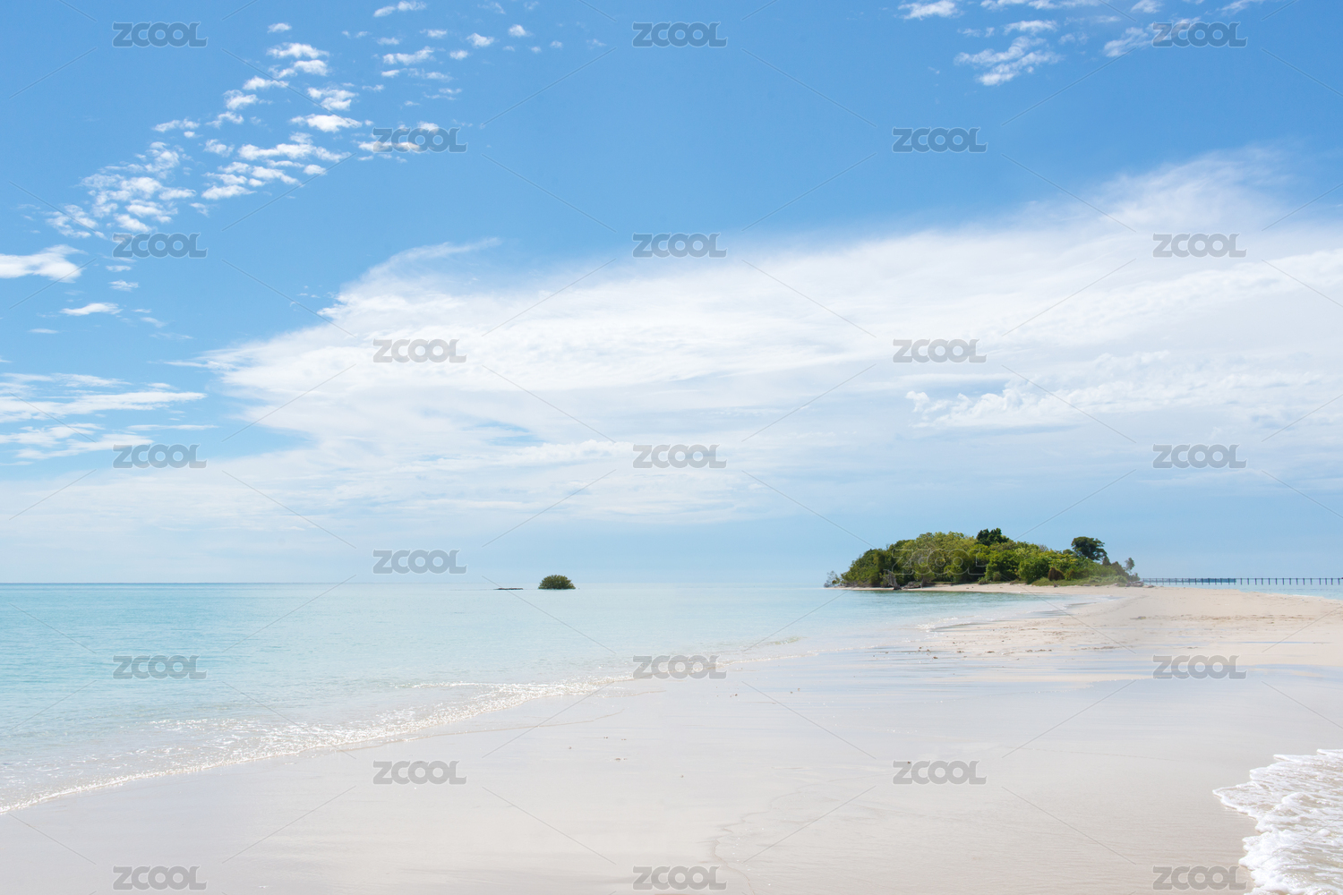 馬來(lái)西亞沙巴州斗湖市仙本那邦邦島景區(qū) 藍(lán)天白云下的淺海與小島