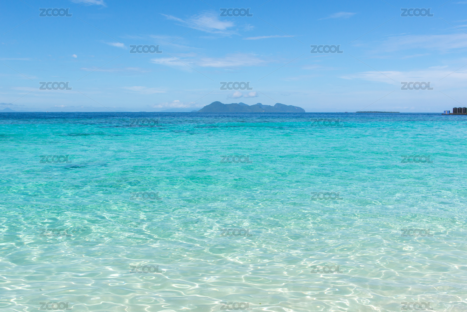 馬來(lái)西亞沙巴州斗湖市仙本那邦邦島景區(qū) 淺灘與遠(yuǎn)處的海島