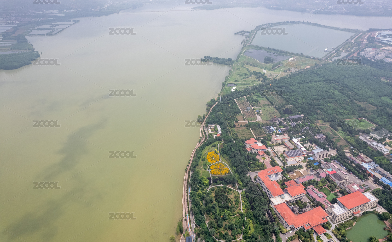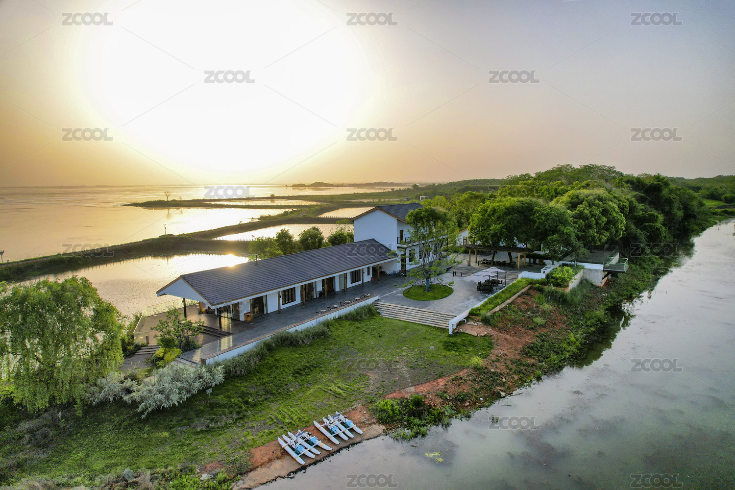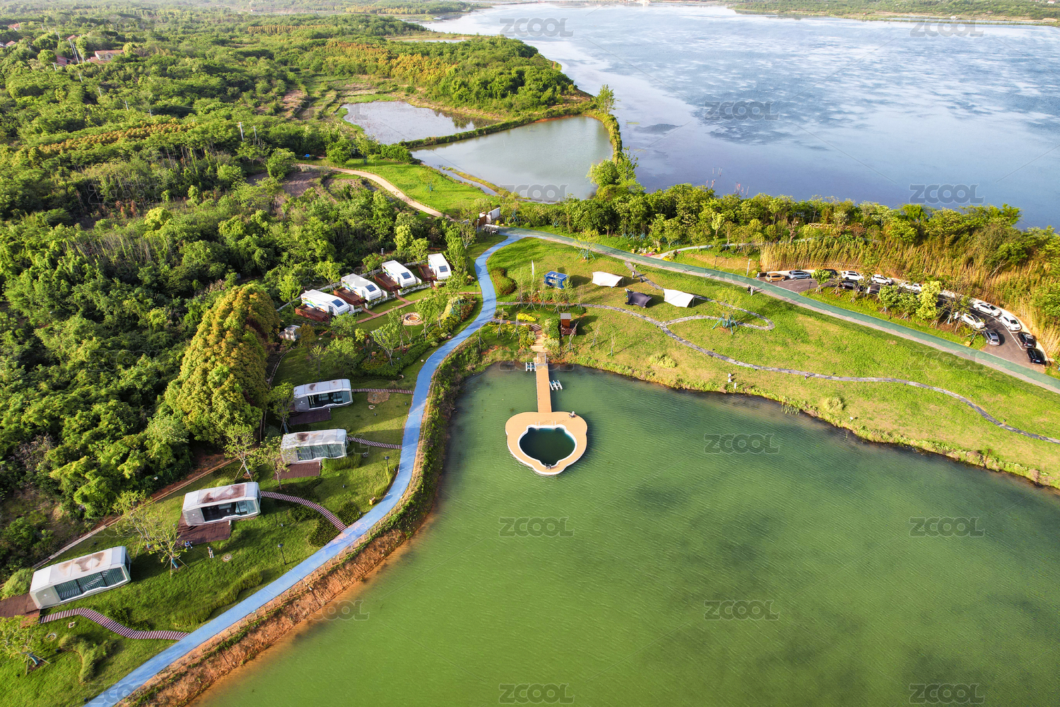 航拍武漢江夏安山湖灣樾舍度假區(qū)風(fēng)景