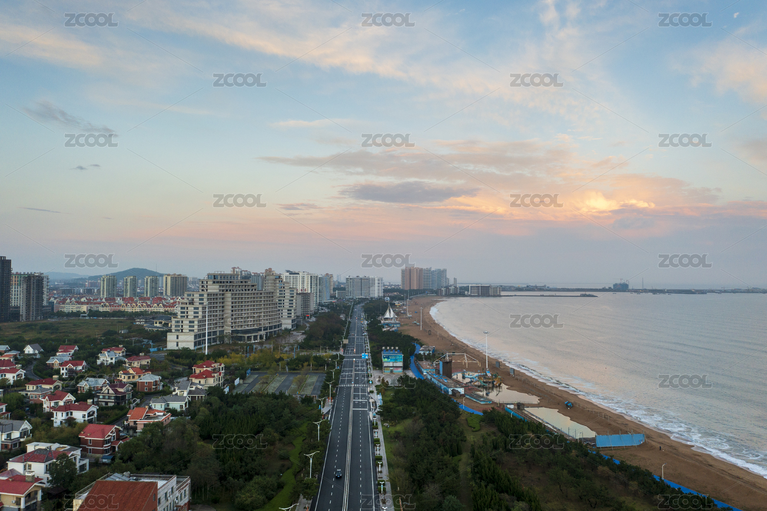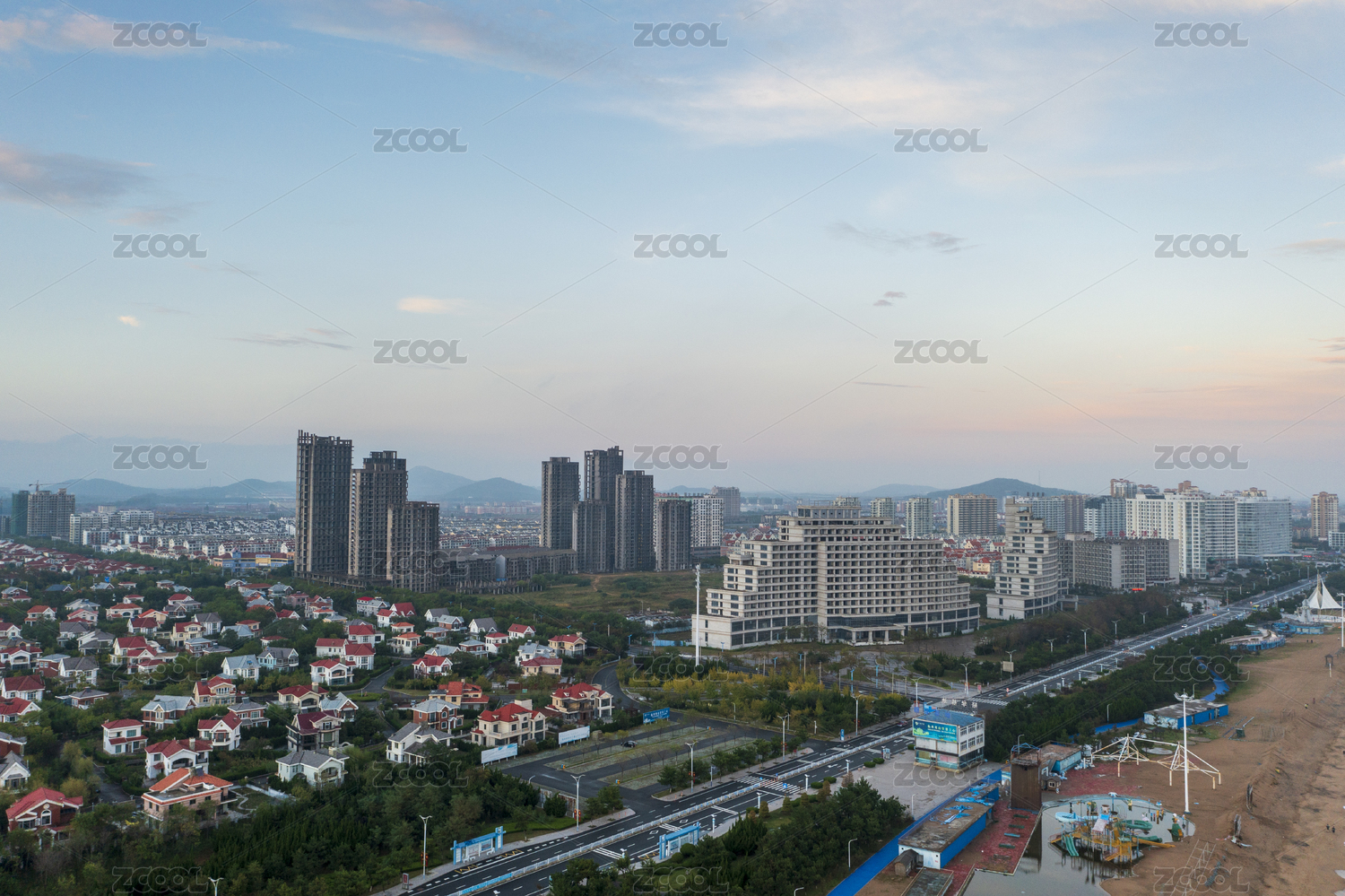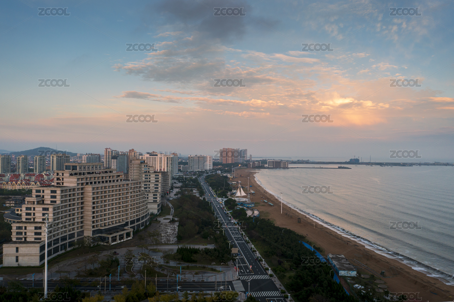 航拍傍晚時(shí)分的山東海陽(yáng)旅游度假區(qū)