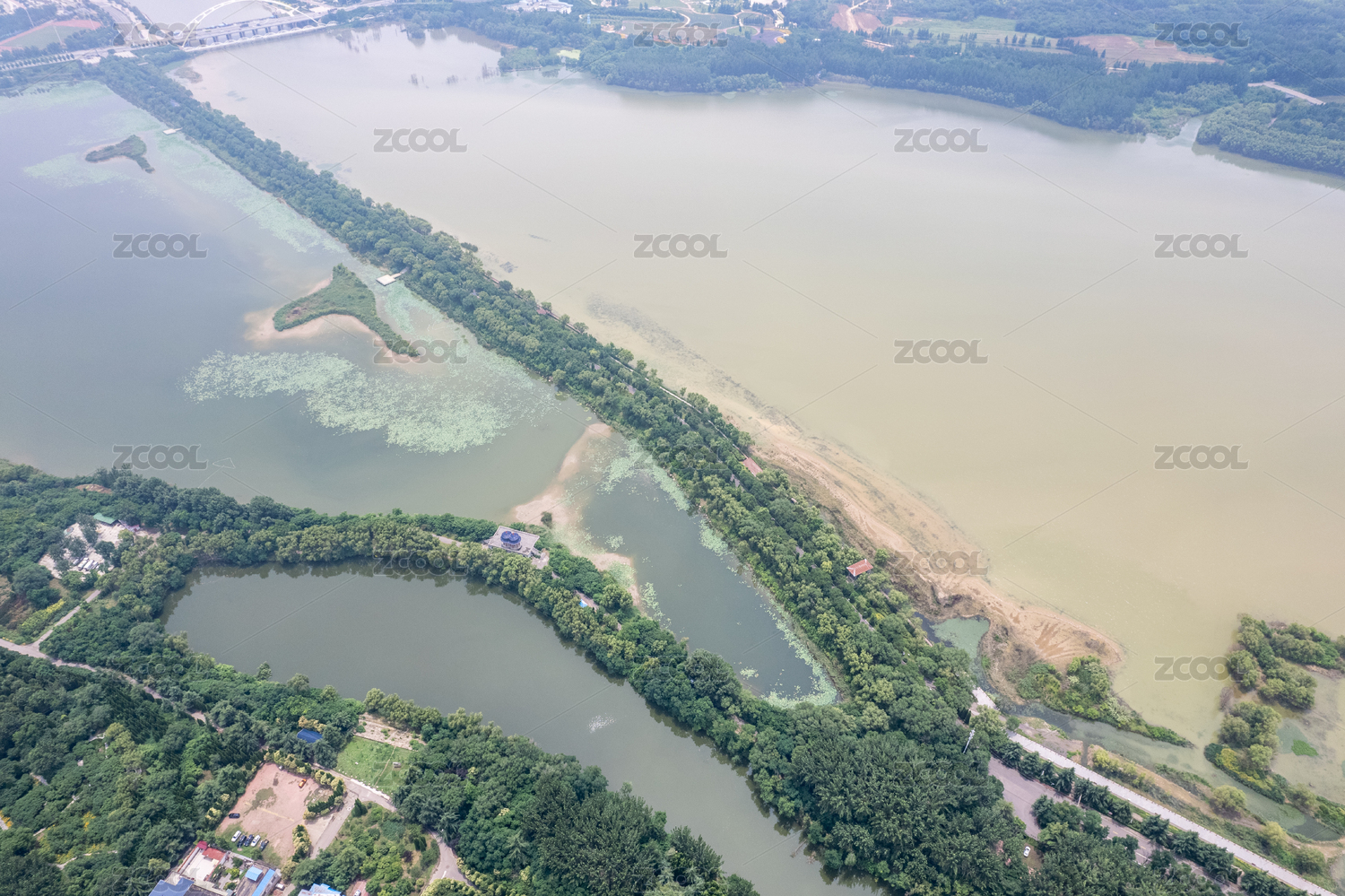 航拍河南三門峽黃河濕地公園旅游度假區(qū)鳥瞰