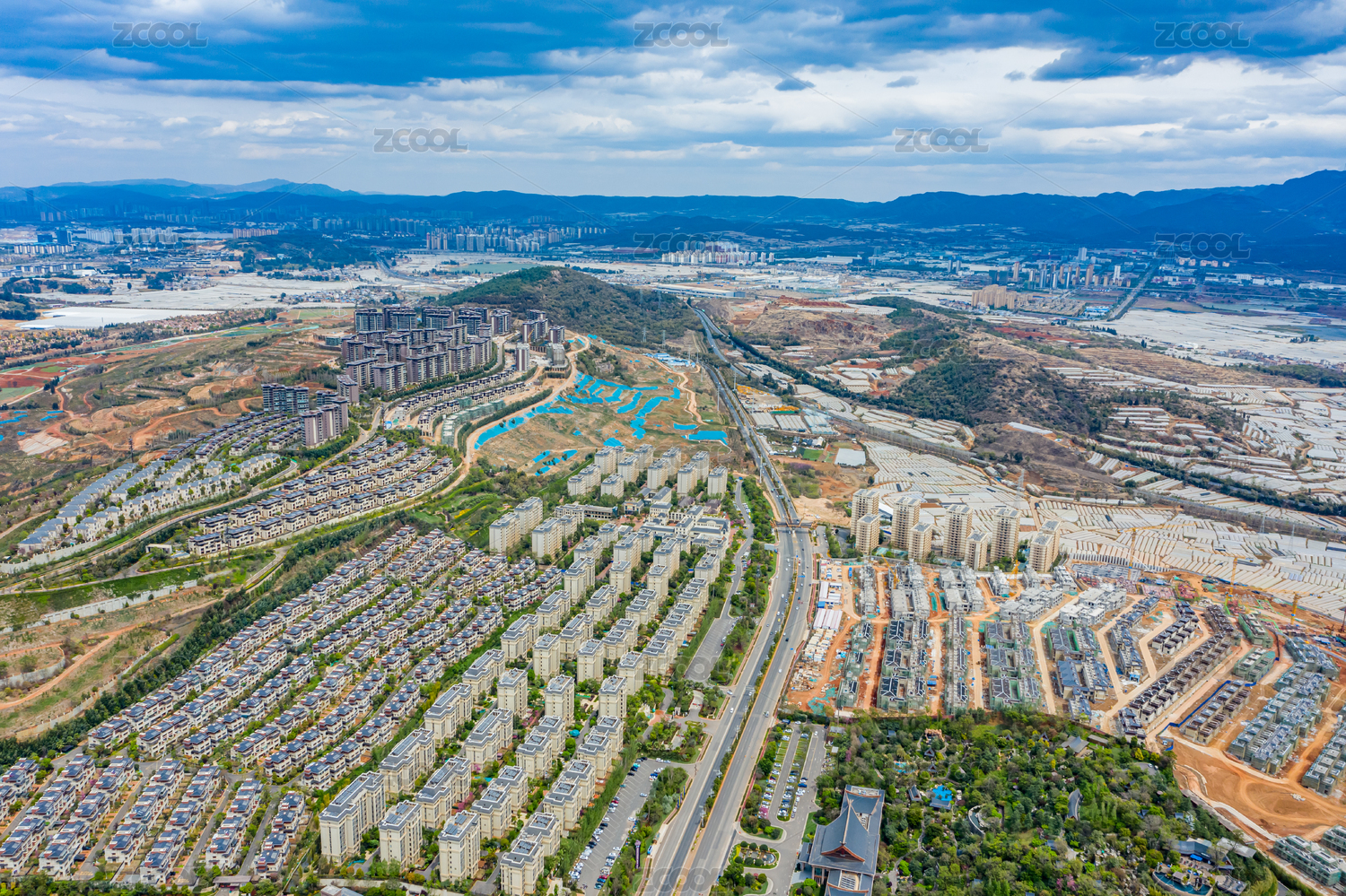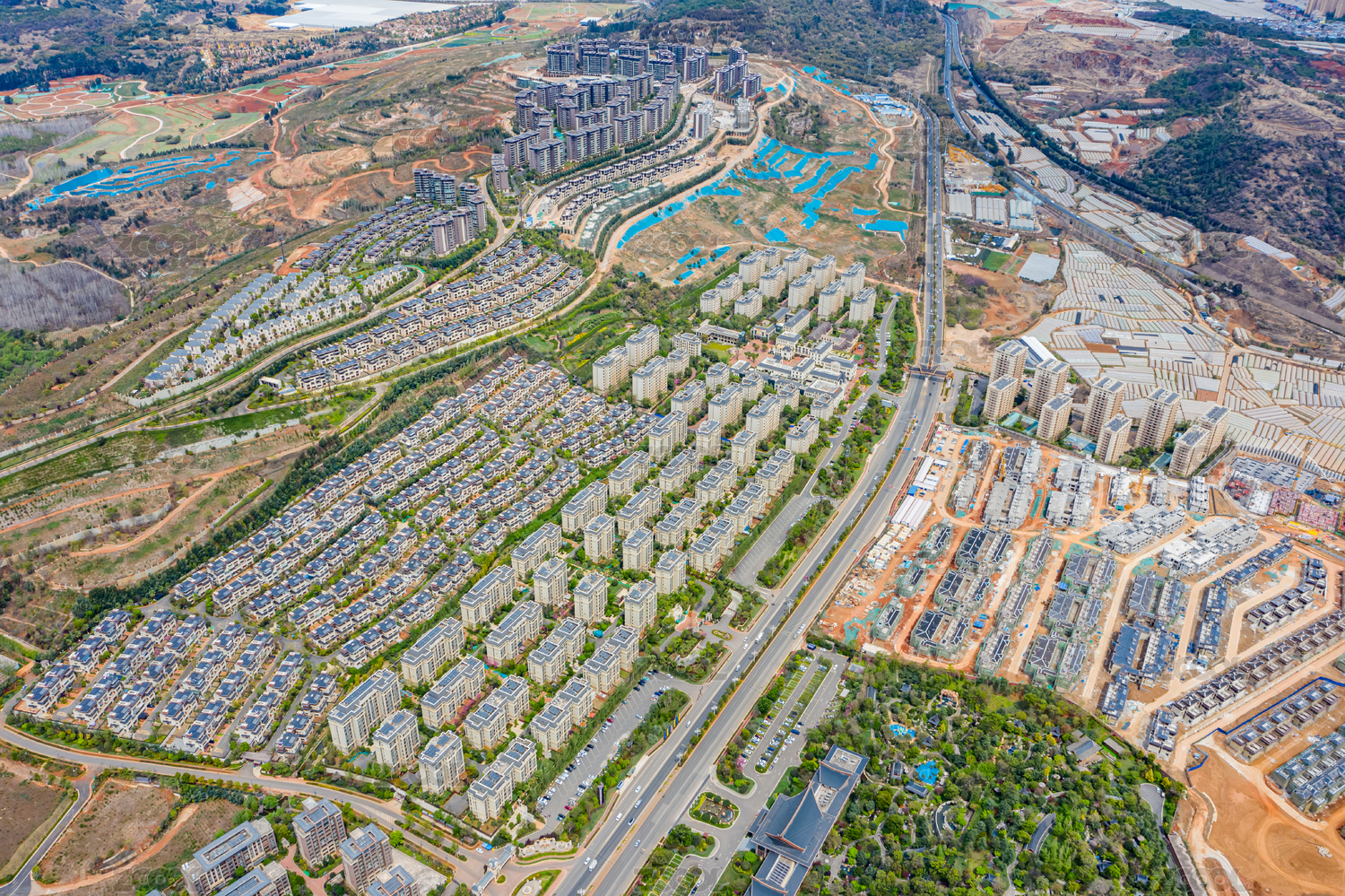 航拍昆明七彩云南古滇名城度假區(qū)住宅建筑群