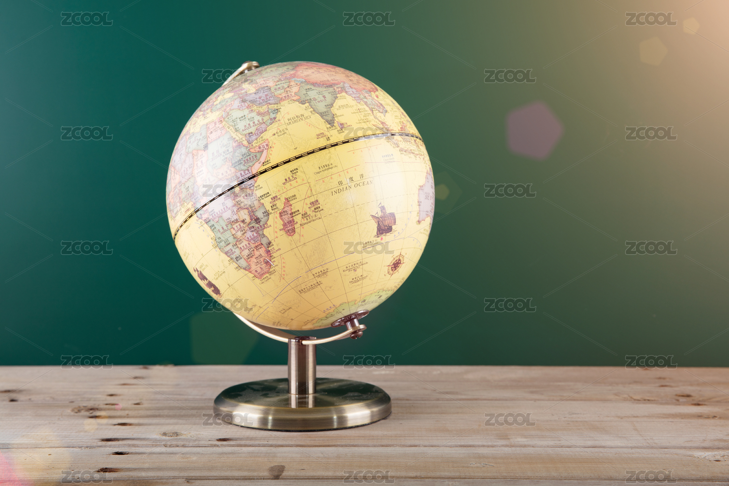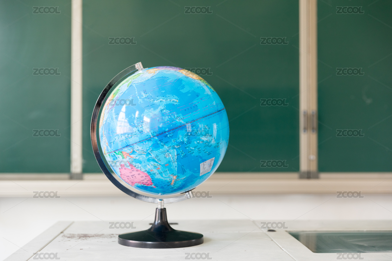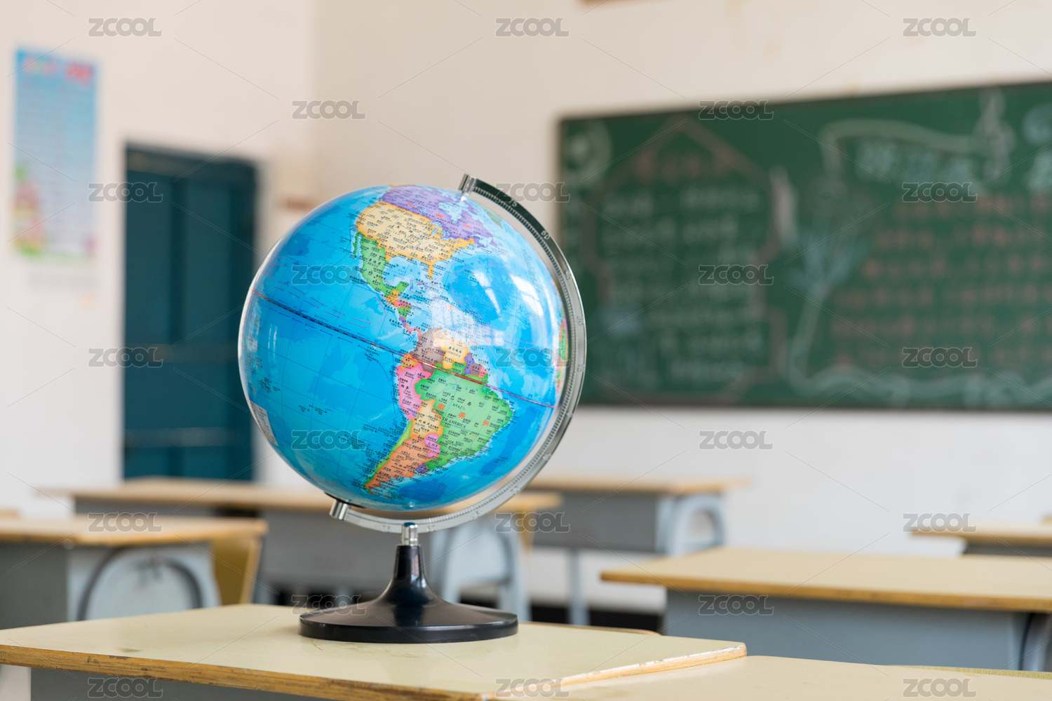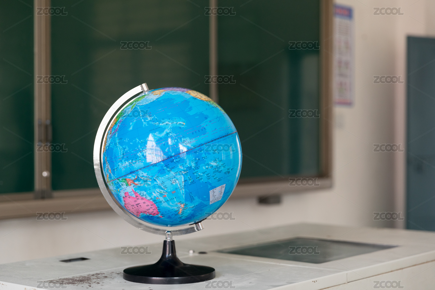 藍(lán)色教學(xué)地球儀放在教室課桌上面