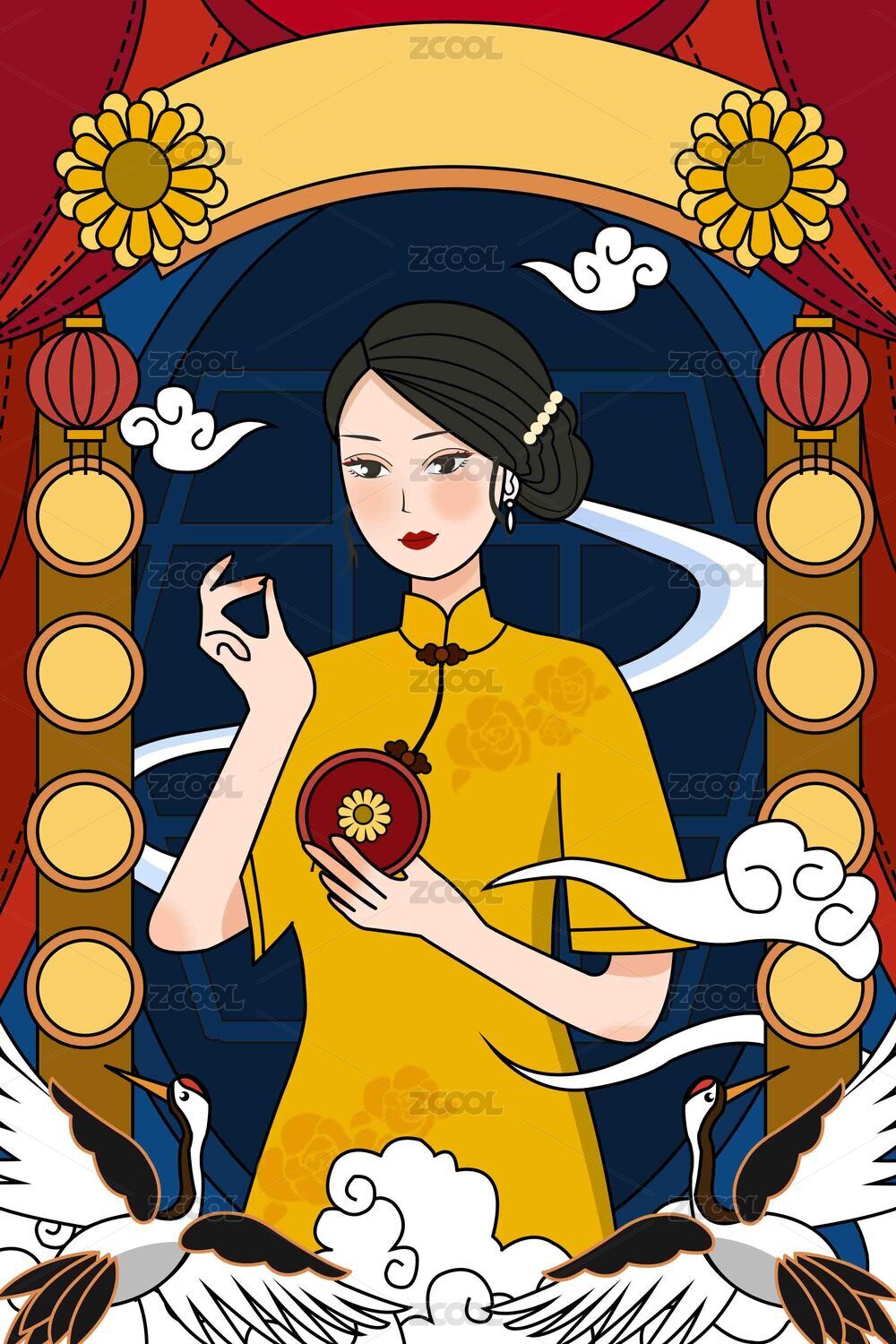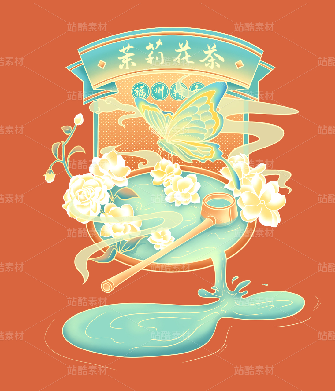 茉莉花茶中國風插畫 | 中國風古韻新中式線性插畫